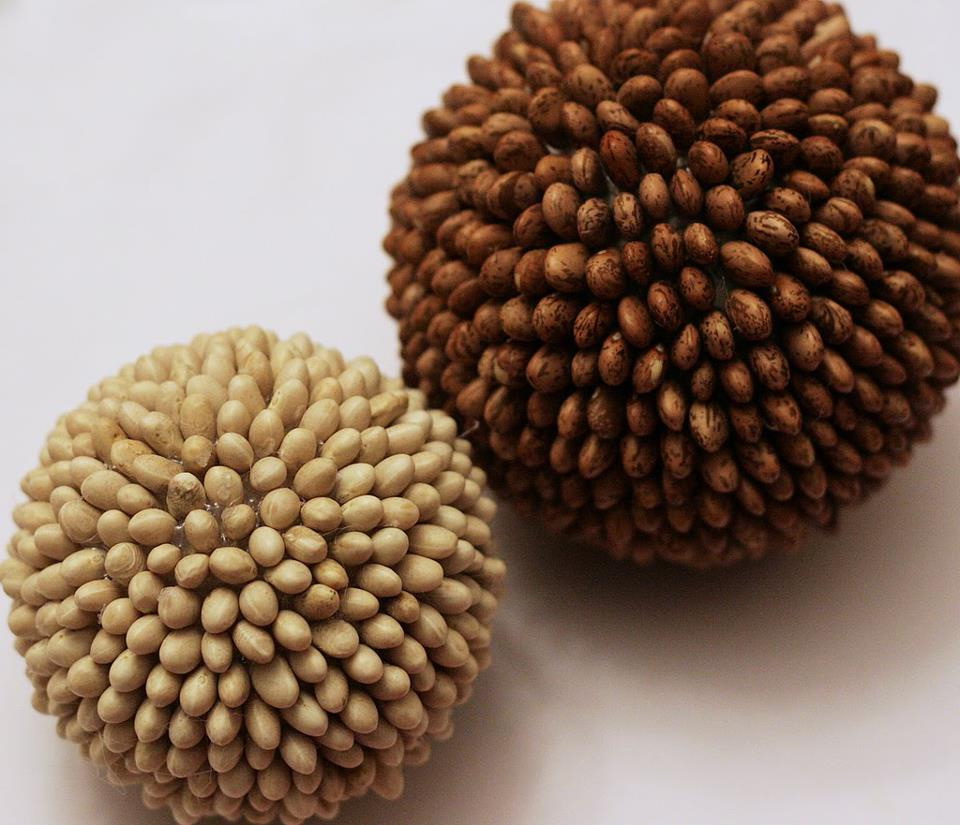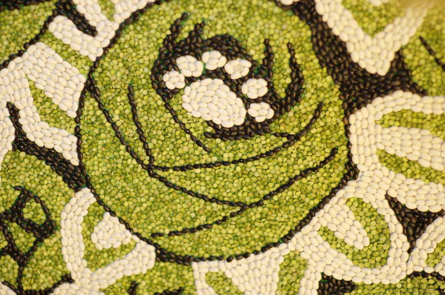 - Nós preparamos cereais, grãos, qualquer material que você precisa. Pode ser complementado com miçangas, fitas, brilhos. Se você quiser pintar os grãos na cor desejada.