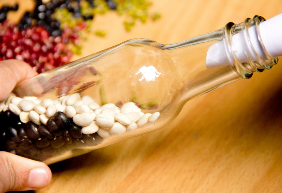 Nós preparamos cereais. Para fazer isso, pensamos sobre os detalhes que vamos fazer com o material, se necessário, pintar os grãos na cor desejada. É importante que, no momento em que o trabalho é realizado, todo o material esteja seco.