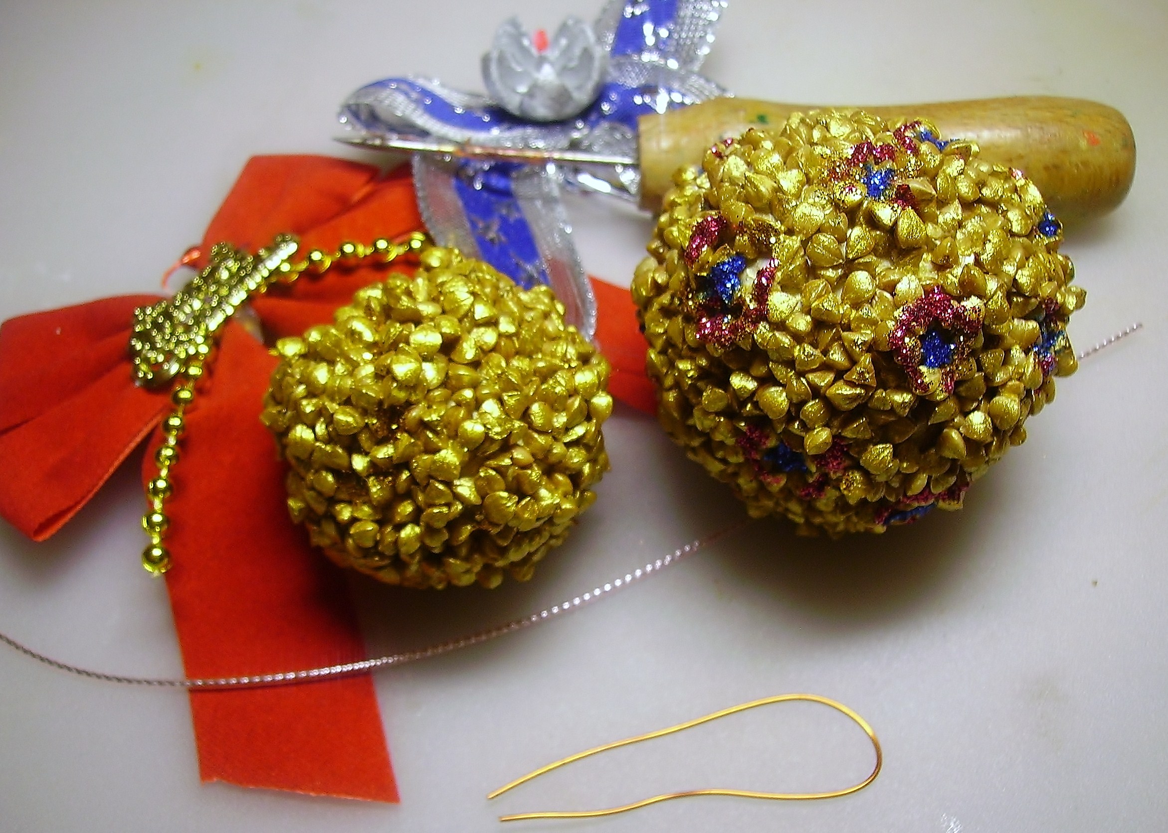 Decorações de Natal típicas de vidro são no passado, existem muitas idéias criativas que podem ser usadas. Um dos mais populares é o uso de cereais.. Para muitos, é surpreendente que não seja possível decorar a bola acabada, mas fazê-la do zero.