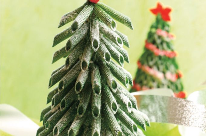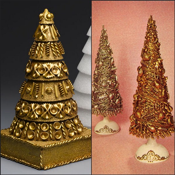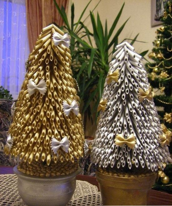 - Para as agulhas, macarrão alongado seria melhor - pegue em espiral. Pinte-as de prata com tinta spray. Quando eles secam, você pode fazer agulhas.