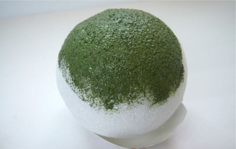 - Manchamos a cola PVA no topo dos fios com uma escova, envolva-a em um prato. Se houver lugares vazios aos quais os grãos não estão ligados, os lubrificamos com cola pontiaguda e os adicionamos com uma pinça.