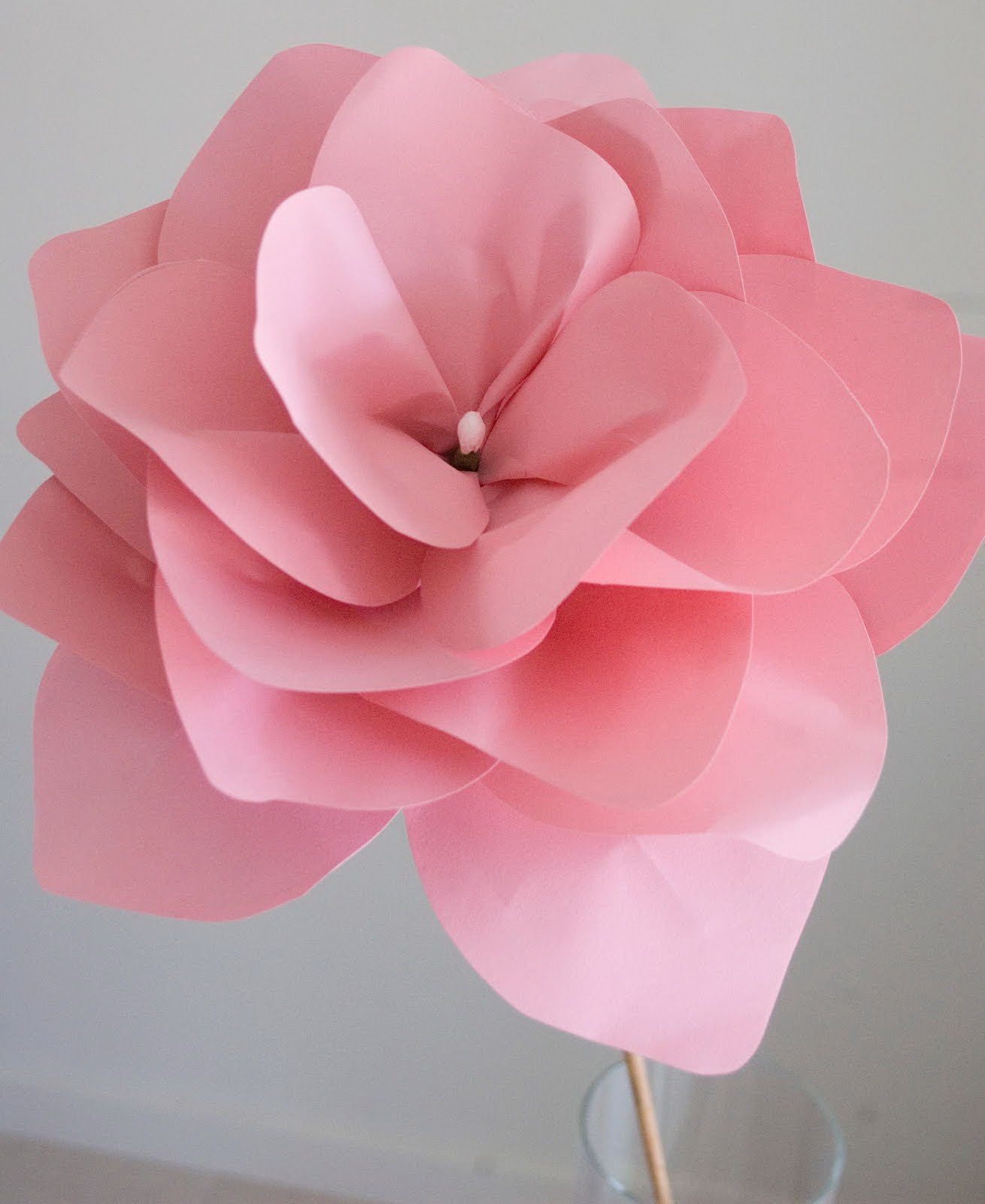 Assim que as pétalas estavam prontas, ela usou uma pistola de cola quente para fixá-las sucessivamente no espeto. Eles devem enquadrar cuidadosamente a haste do espeto.