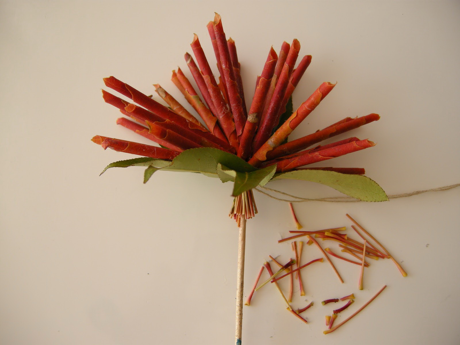 2. Organizei todas as peças florais ao redor do espeto e colei-as com cola quente.