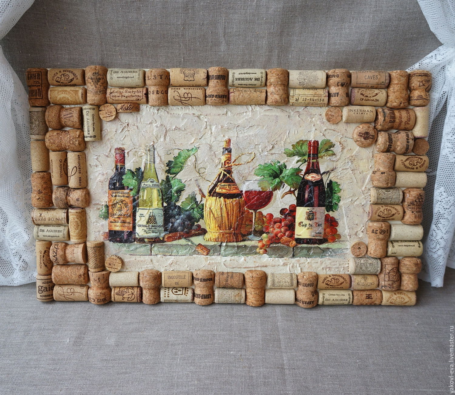 Você sabia que a cortiça é um material muito popular para bordados em outros países? Eles são usados para fazer pinturas, estatuetas, tapetes, enfeites, eles emolduram a mobília e criam elementos não padronizados de decoração. Portanto, não se apresse em jogar fora os engarrafamentos depois dos feriados passados - eles podem ser muito interessantes de usar!