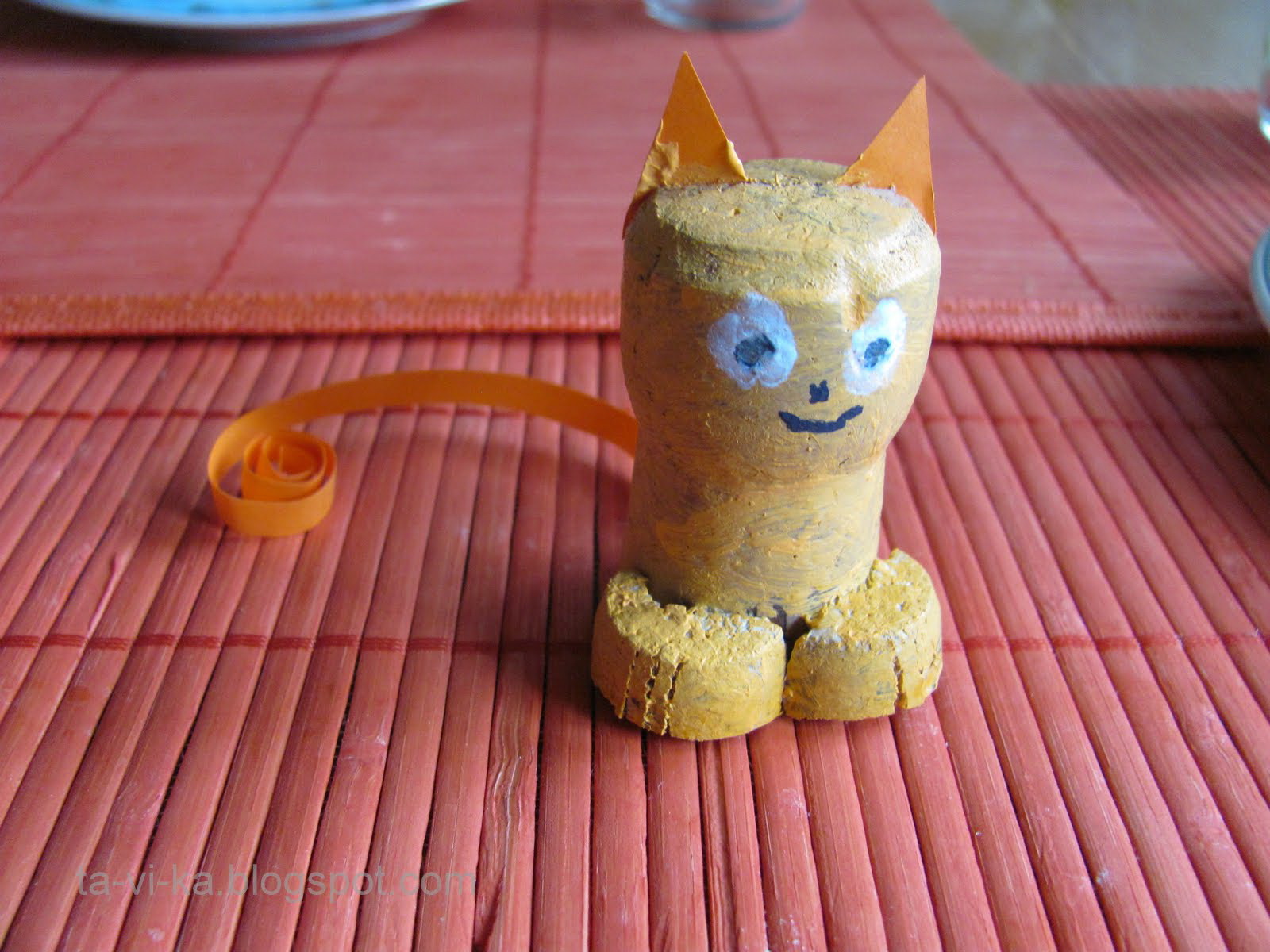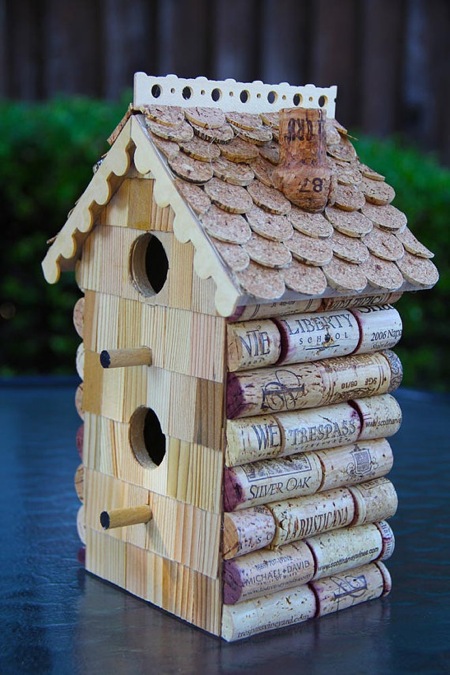 Pegue um papelão grosso, corte fora de componentes para a casa: o fundo, telhado, paredes. Cortar ao longo dos elementos corticais, cole-os todas as quatro paredes. Em seguida, corte a rolha em círculos e forme uma telha bem cuidada. Lembre-se de deixar uma abertura redonda para entrada.