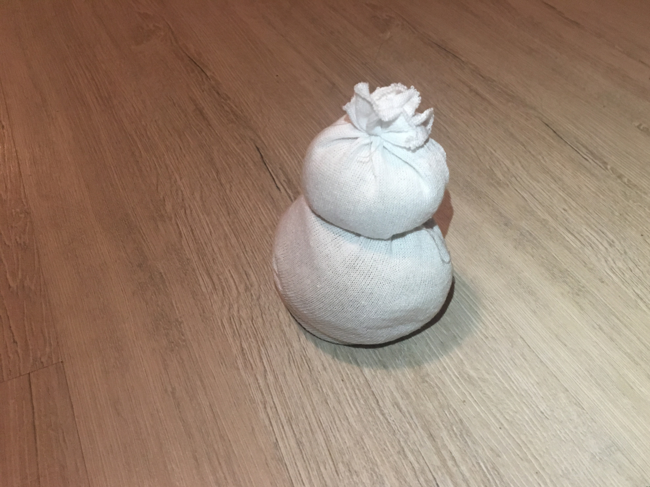 Depois disso, encher o boneco de neve com arroz, é aconselhável escolher rodada para que os grãos não se destacam. Você pode usar qualquer cereal, mas o arroz é melhor distribuído uniformemente e é fácil dar a forma desejada ao produto.