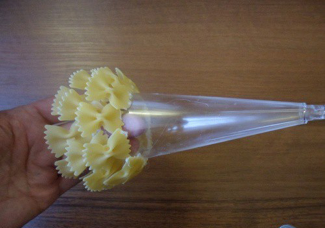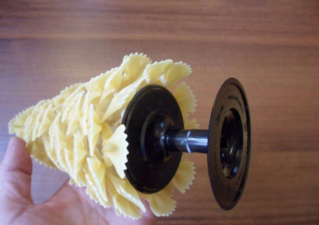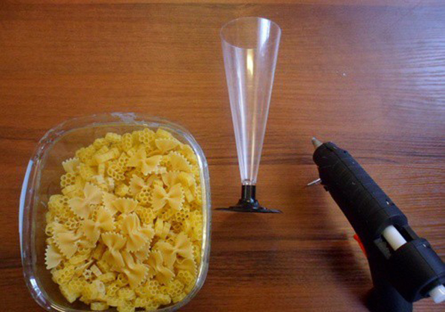 Alguns ofícios podem ser feitos a partir dos produtos disponíveis. Massas vêm em formas diferentes e alguns deles podem ser usados para o trabalho manual, os arcos parecem originais. Não importa que tipo de produto será usado, mesmo os mais baratos ficarão lindos, o principal é decorar o trinket corretamente.
