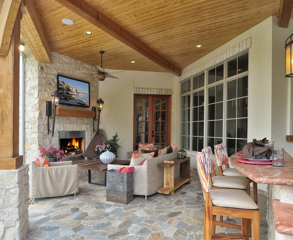 Construção metálica se encaixa perfeitamente em estilo alta tecnologiaque consiste em uma combinação de vidro e metal. Vai ficar bem no minimalismo, no futurismo, enraizar-se no loft. Mas tentando inseri-lo no estilo country, estilo americano, eco e outros, referindo-se a intimidade com a natureza, a vida no campo, materiais naturais, não vale a pena.