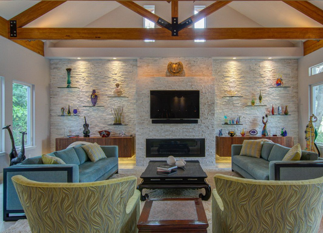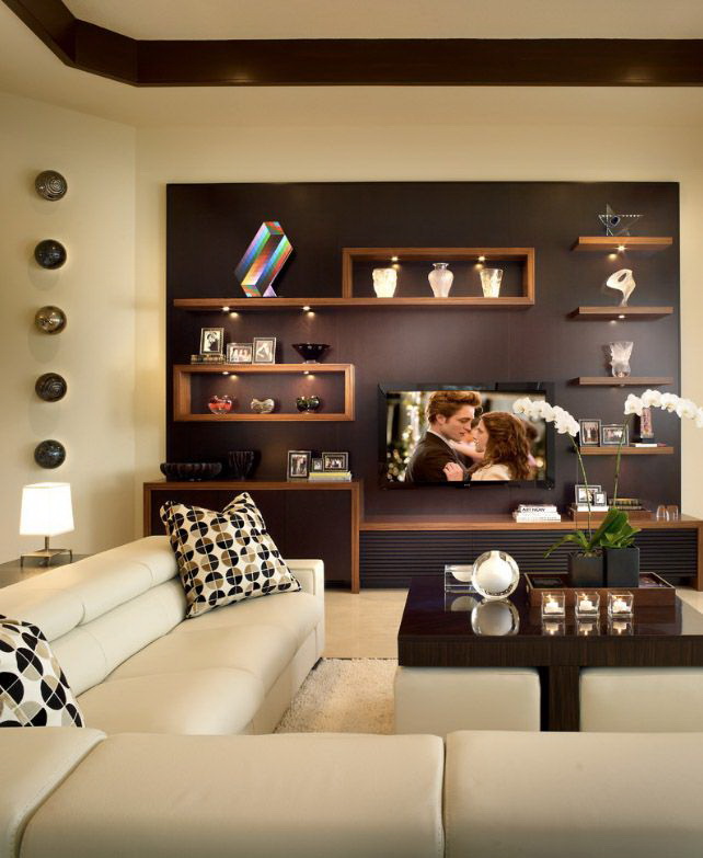 Se isso sala de estar, requisitos de prateleira abaixo. É necessário levar em conta apenas a questão estética.Toda a família se reúne na sala de estar, os convidados chegam a ela. Se a cozinha não é tão importante, então na prateleira da sala de estar deve ser uma parte ideal do interior. Todos os materiais são adequados para tais condições, exceto para aglomerado, que parece muito orçamento.