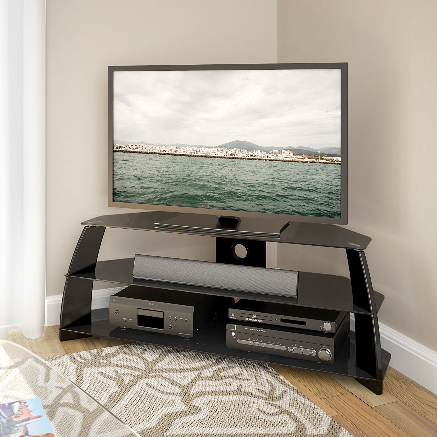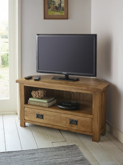 - Esquina. Tais estruturas são montadas nos cantos com suportes ocultos e têm uma forma triangular. Permitir colocar a TV sem perda de espaço, além disso, de forma bastante confiável.