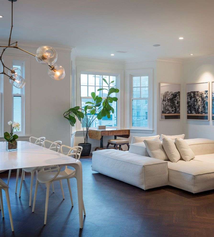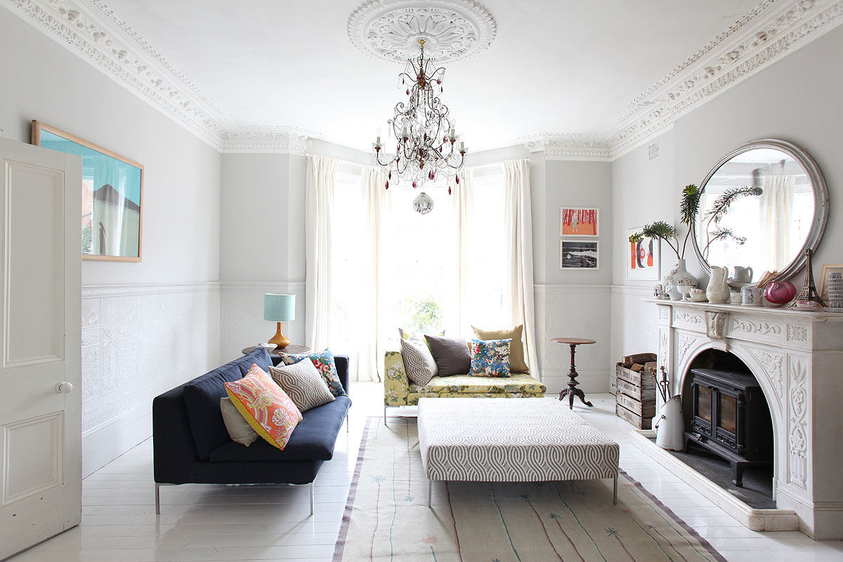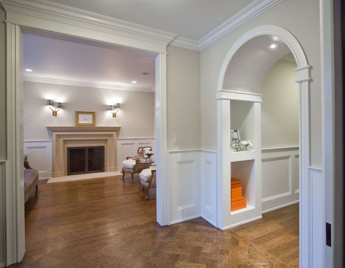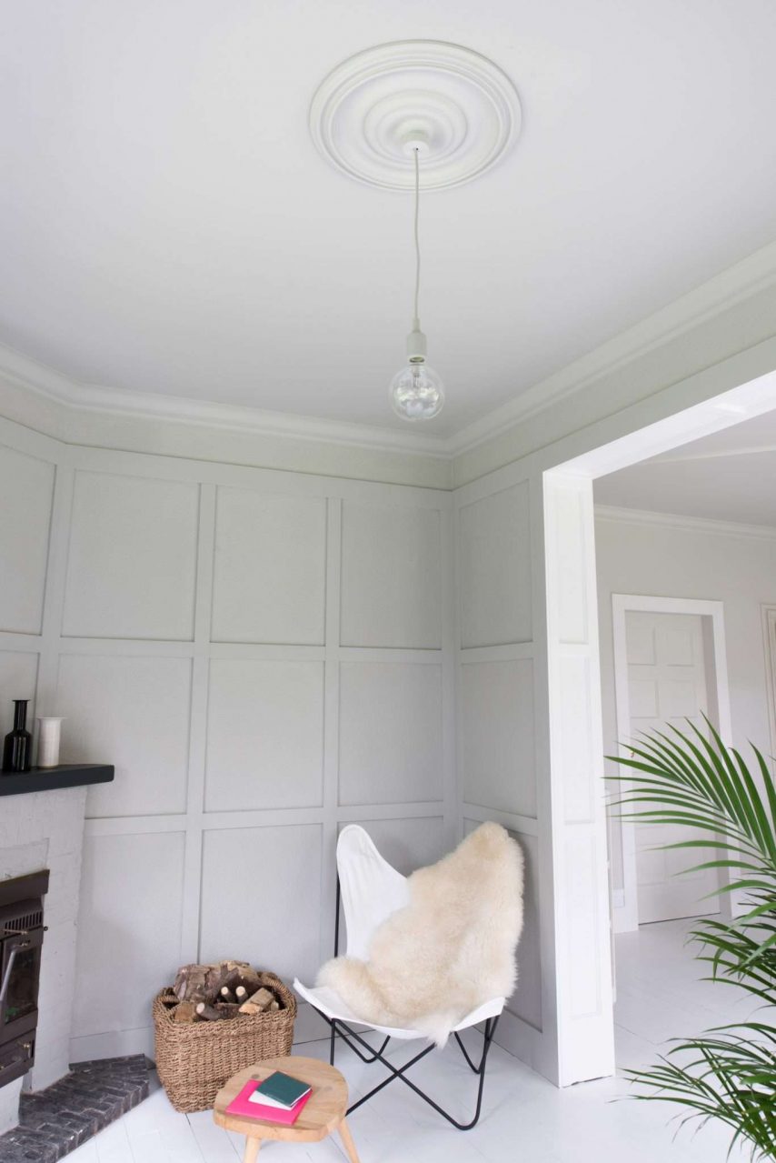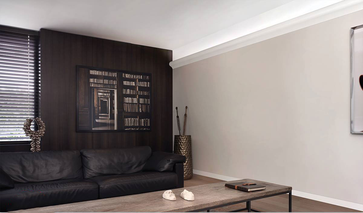 Fazendo a junção das paredes e tecto ajuda a criar um design orgânico com uma transição suave. A baguete cuidadosamente selecionada ajudará a adicionar visualmente a altura da sala.