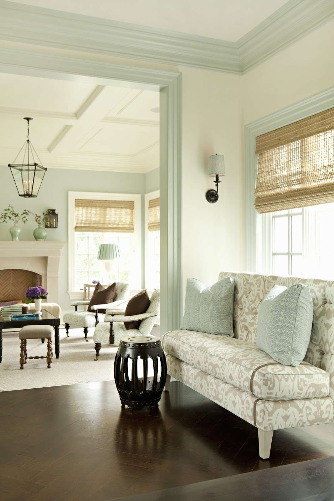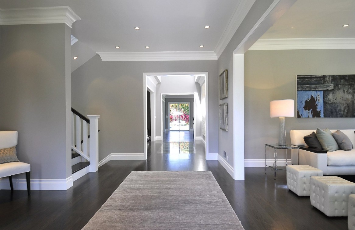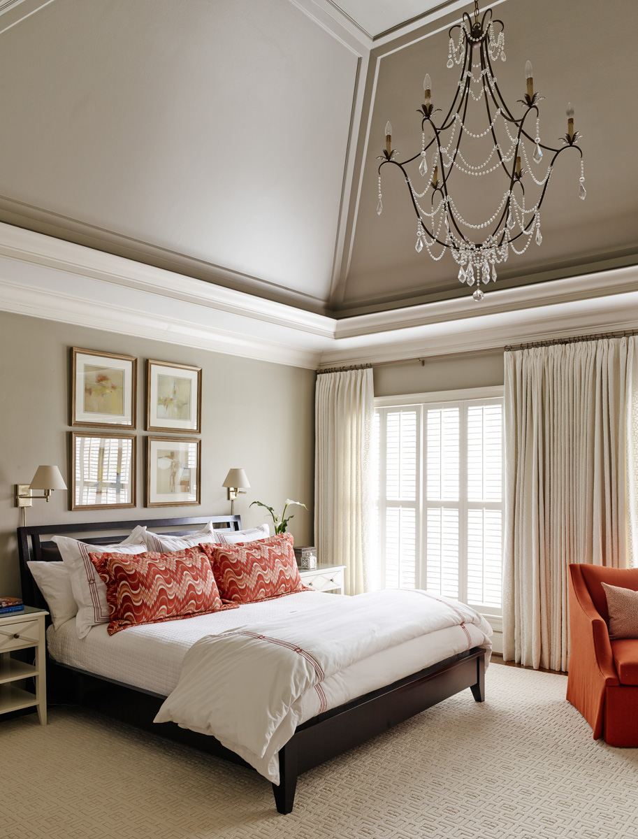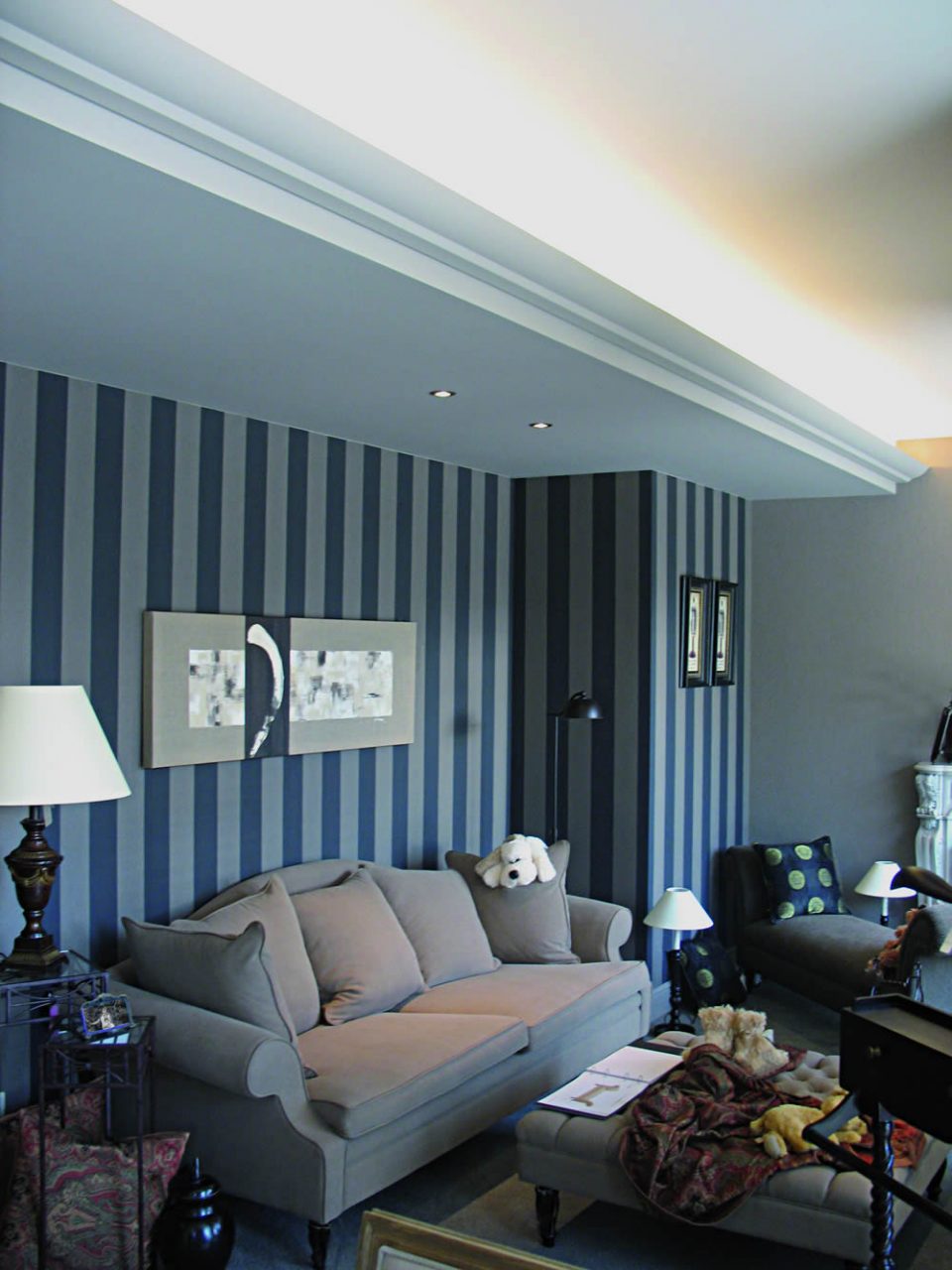 Fazendo a junção das paredes e tecto ajuda a criar um design orgânico com uma transição suave. A baguete cuidadosamente selecionada ajudará a adicionar visualmente a altura da sala.