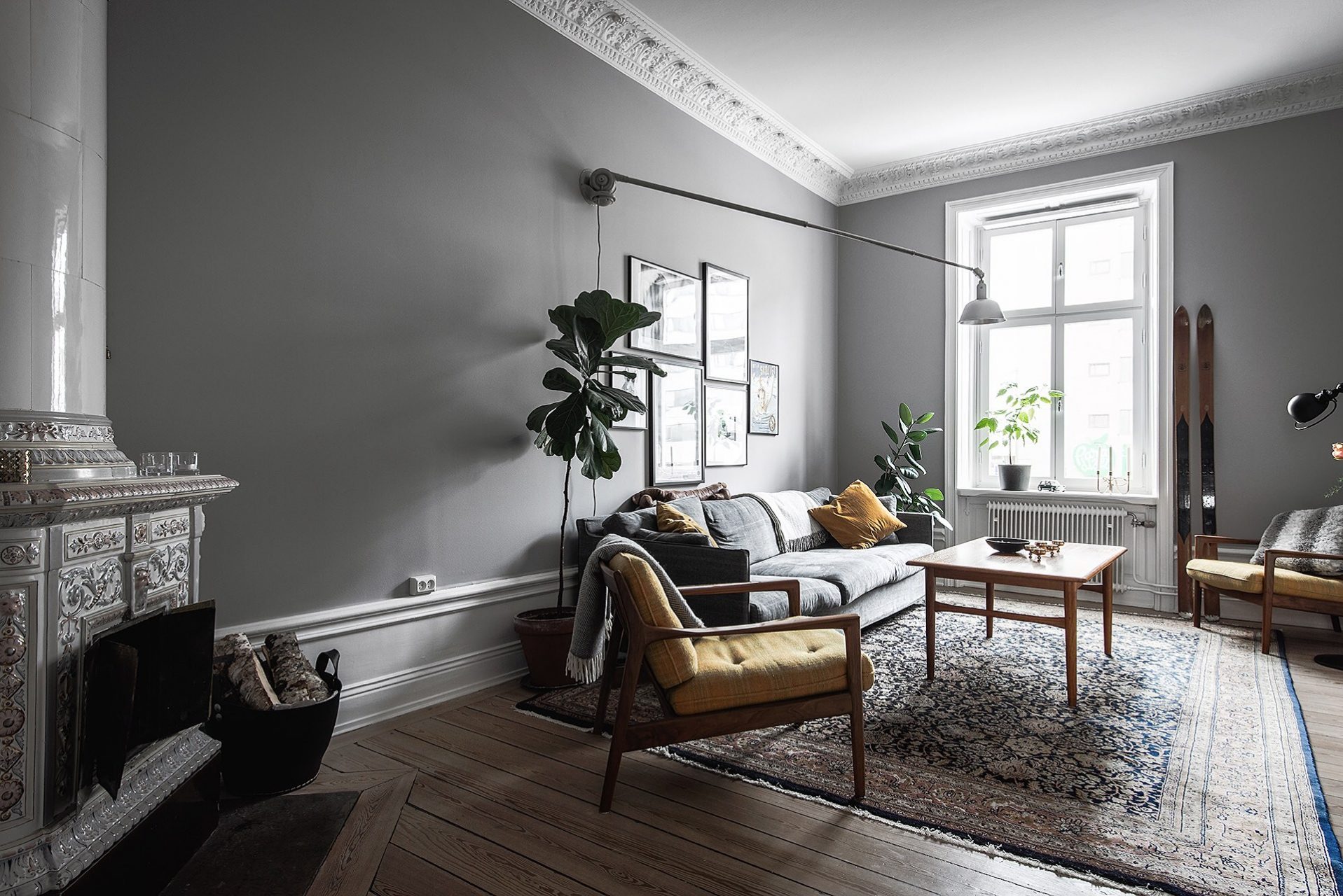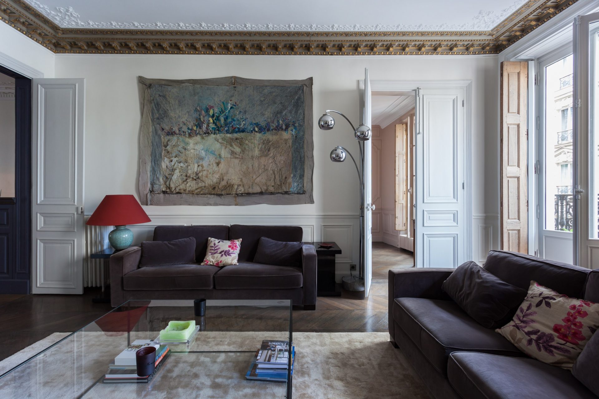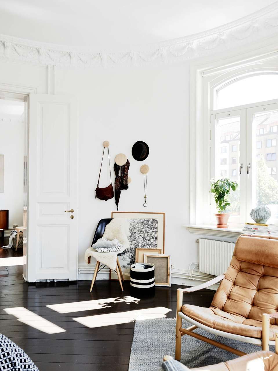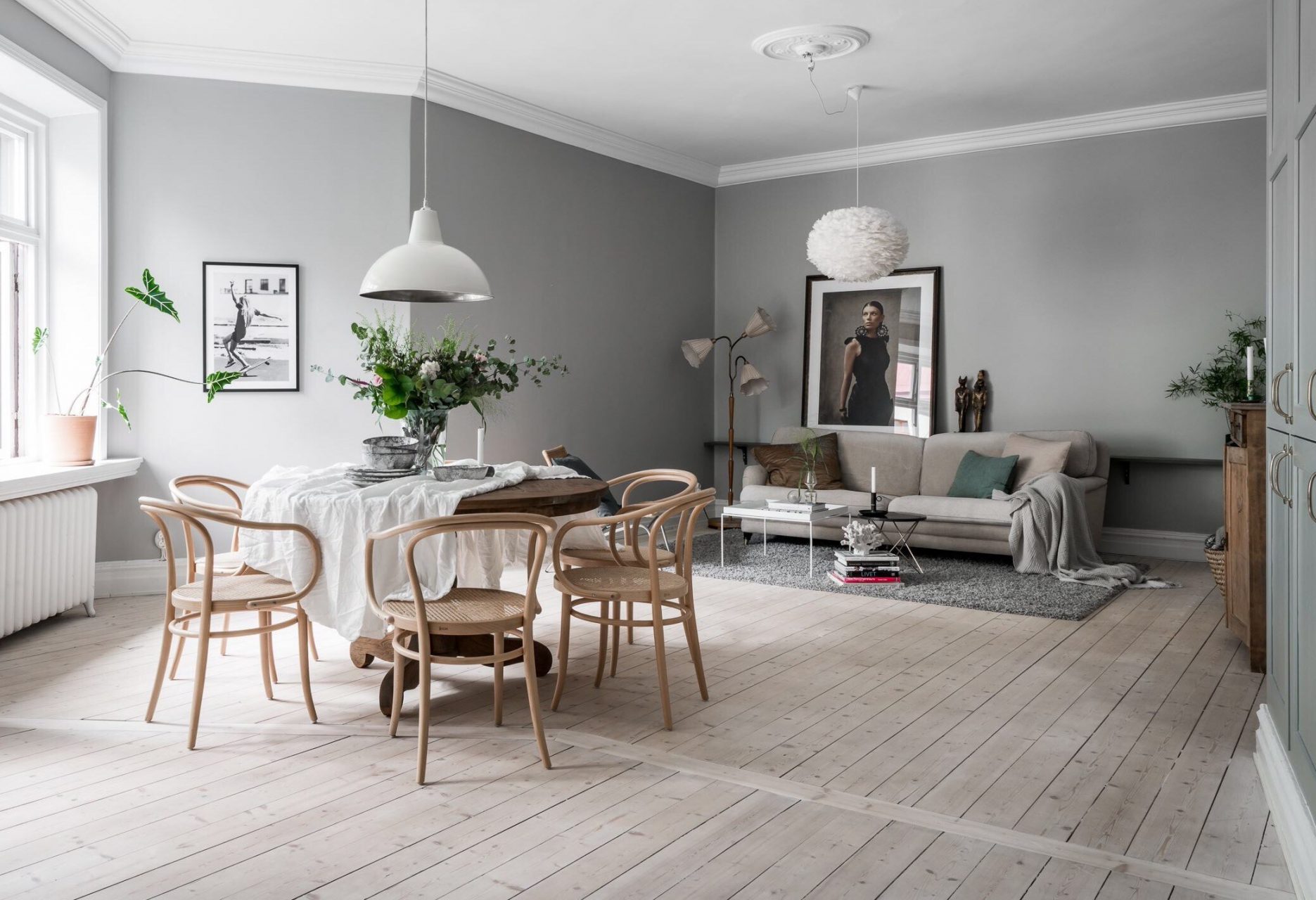 Fazendo a junção das paredes e tecto ajuda a criar um design orgânico com uma transição suave. A baguete cuidadosamente selecionada ajudará a adicionar visualmente a altura da sala.