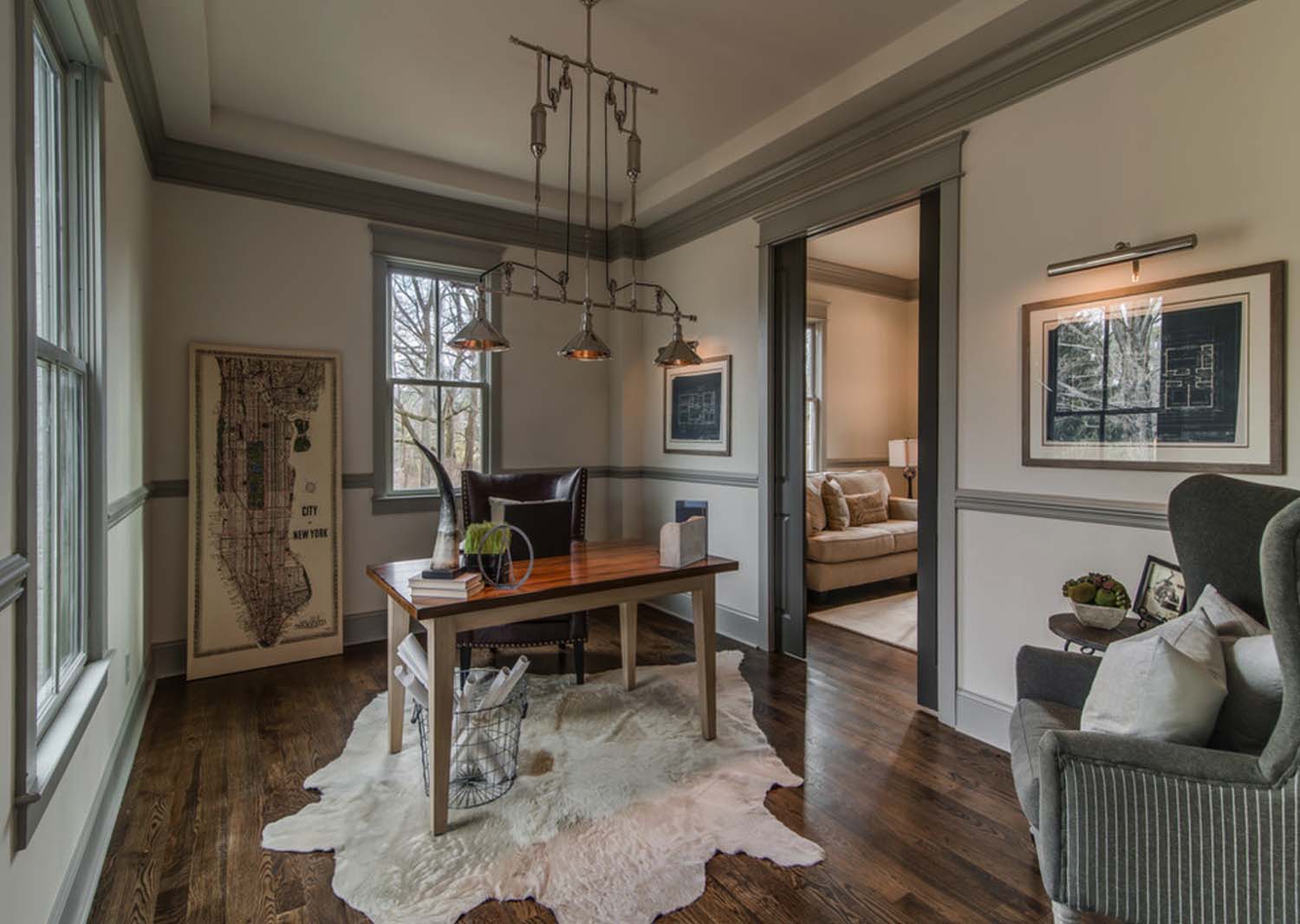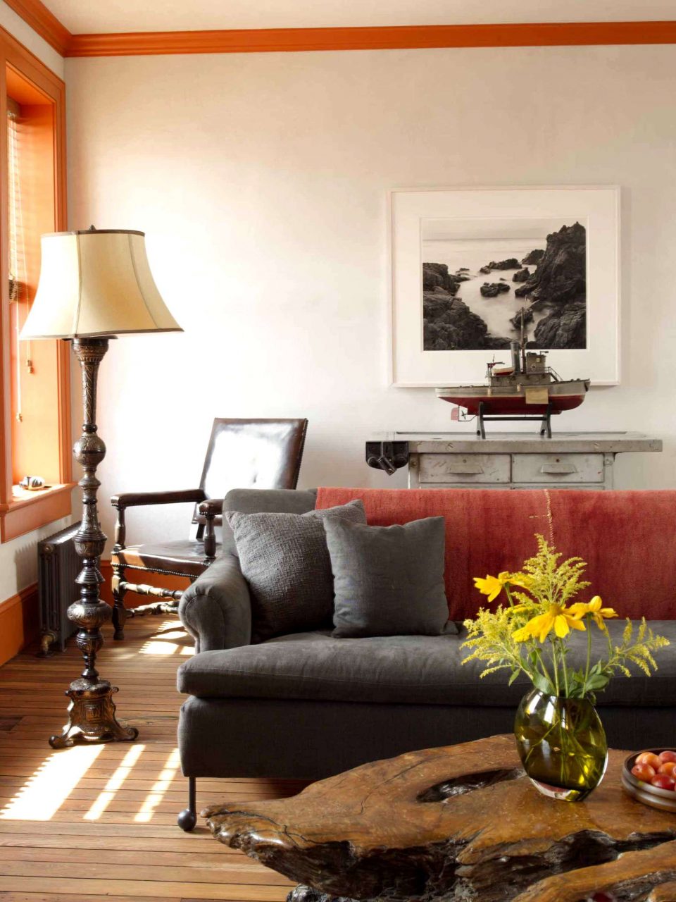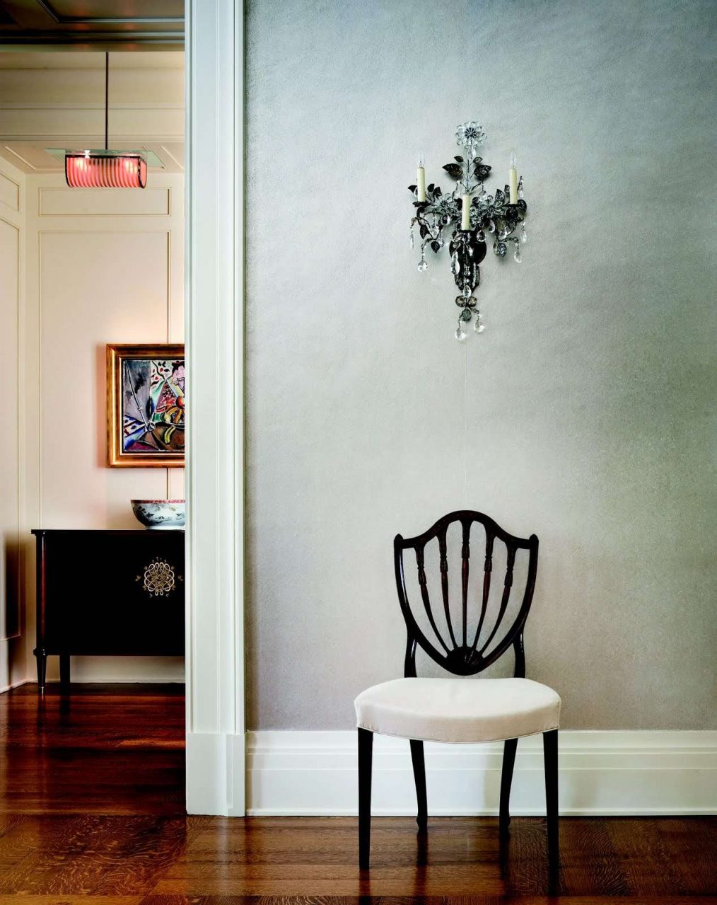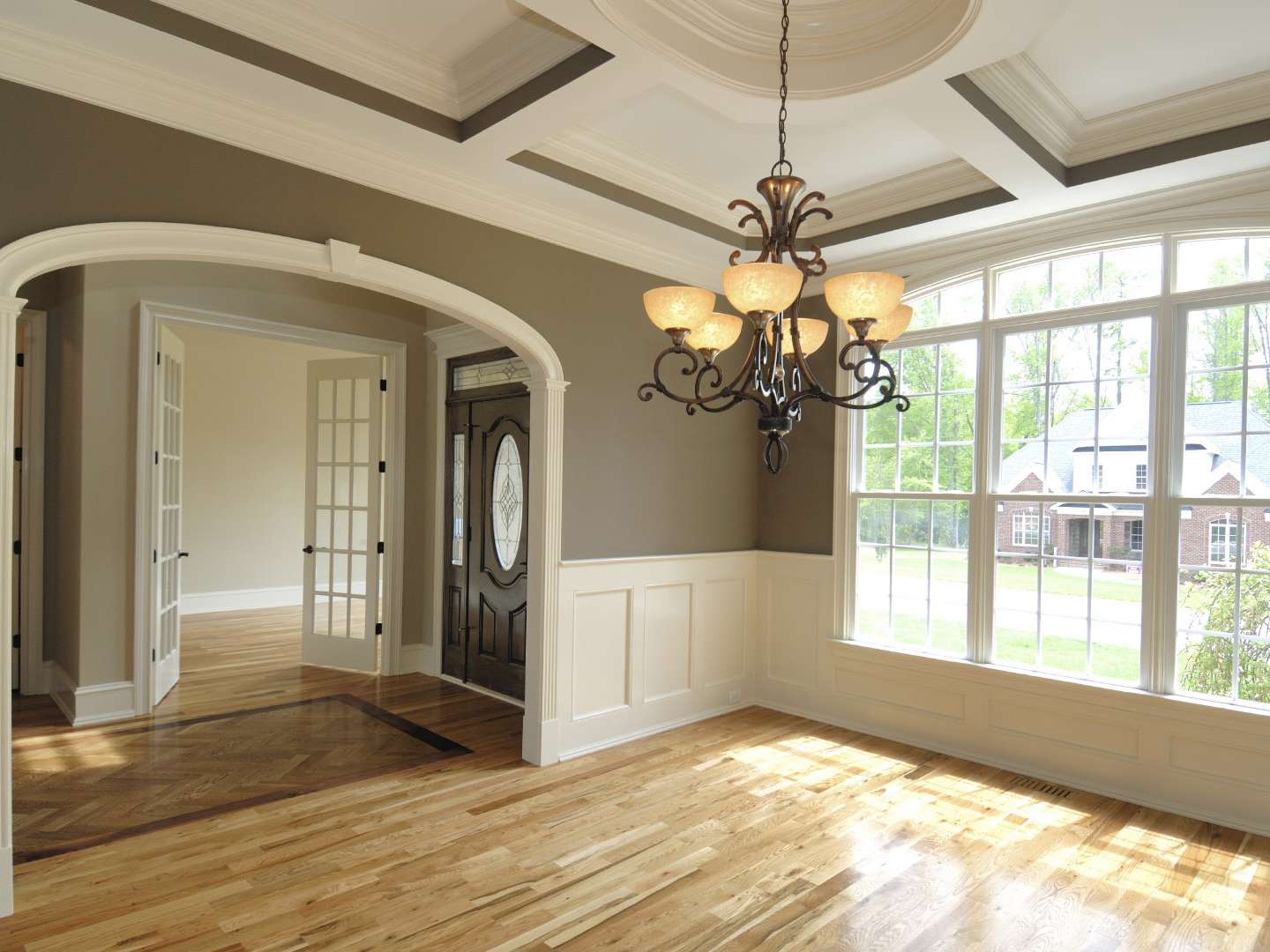 Fazendo a junção das paredes e tecto ajuda a criar um design orgânico com uma transição suave. A baguete cuidadosamente selecionada ajudará a adicionar visualmente a altura da sala.