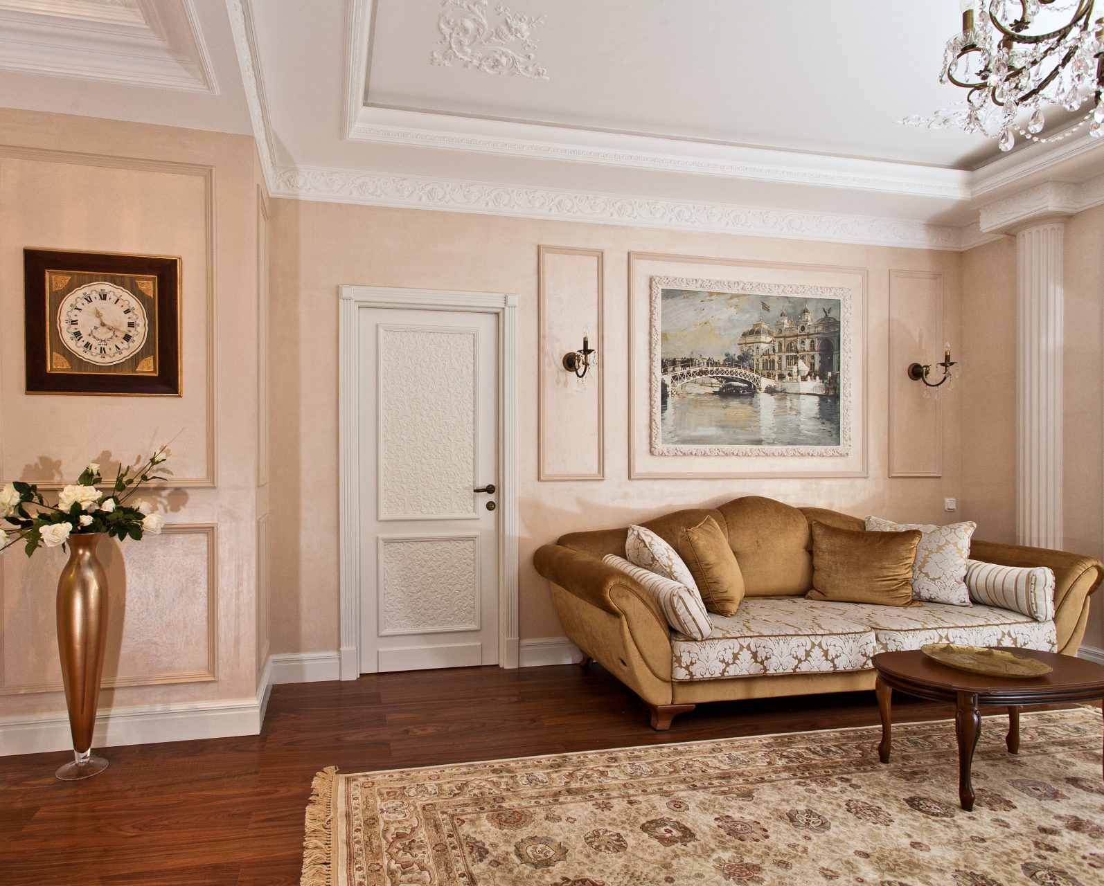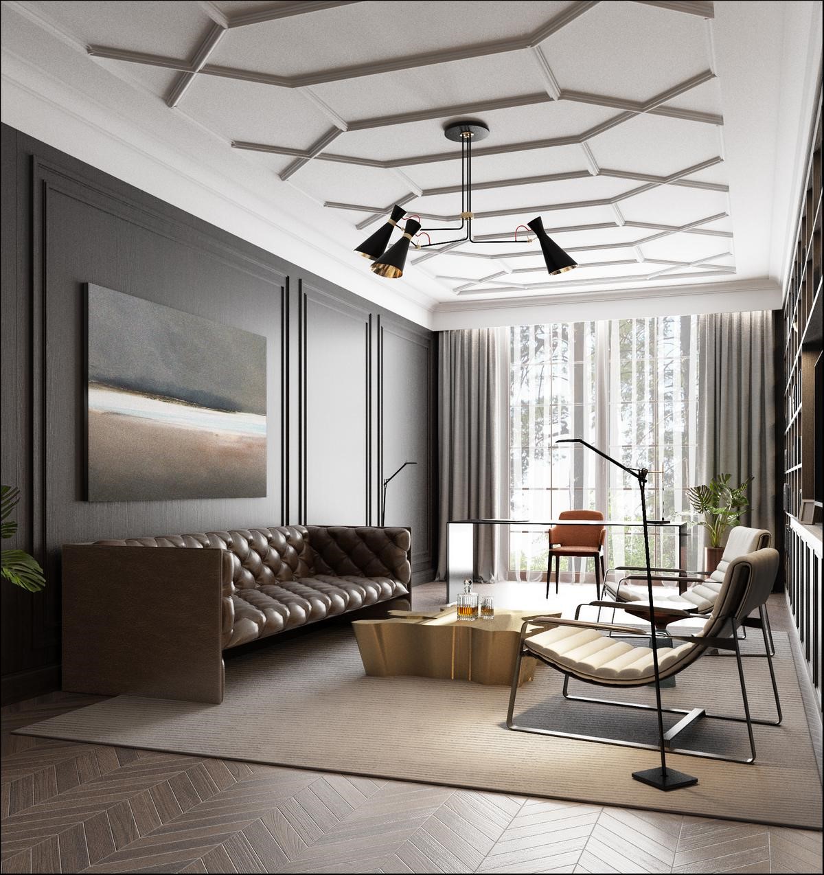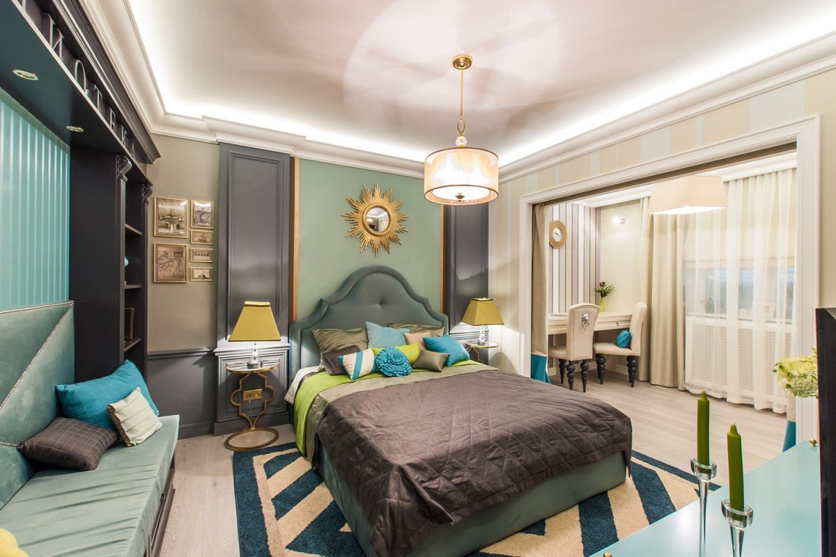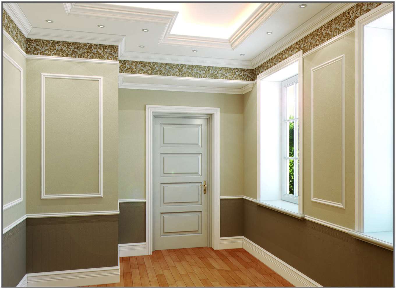 - Cornija de teto deve ser combinada em cores com qualquer elemento do design de interiores.