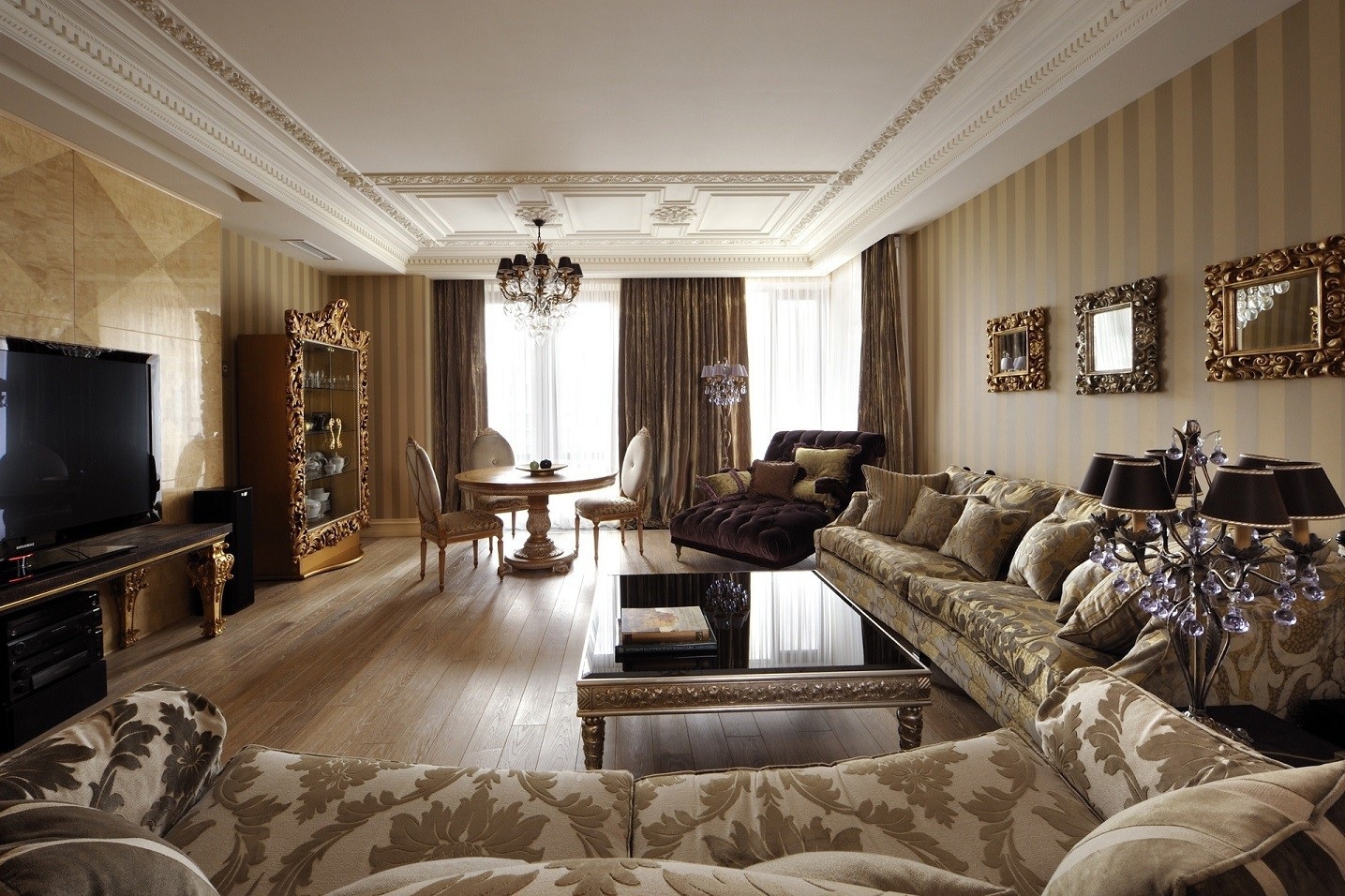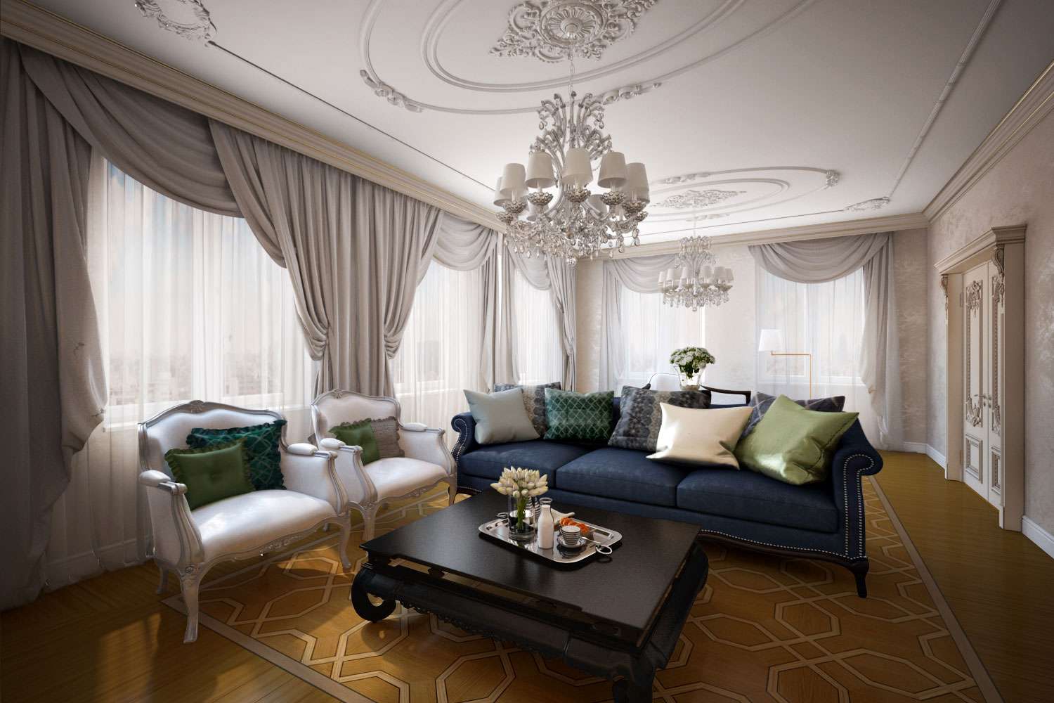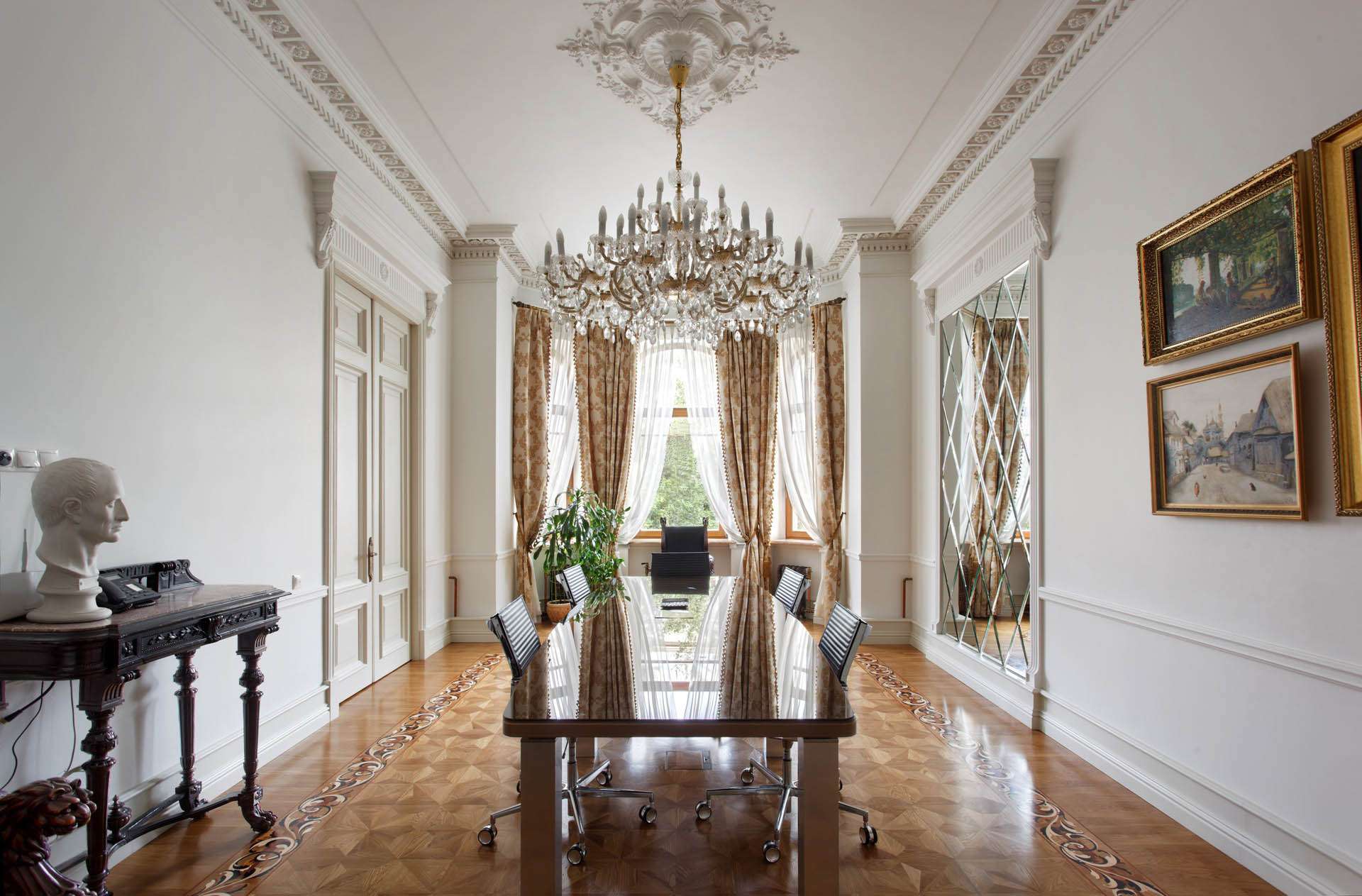 - Cornija de teto deve ser combinada em cores com qualquer elemento do design de interiores.