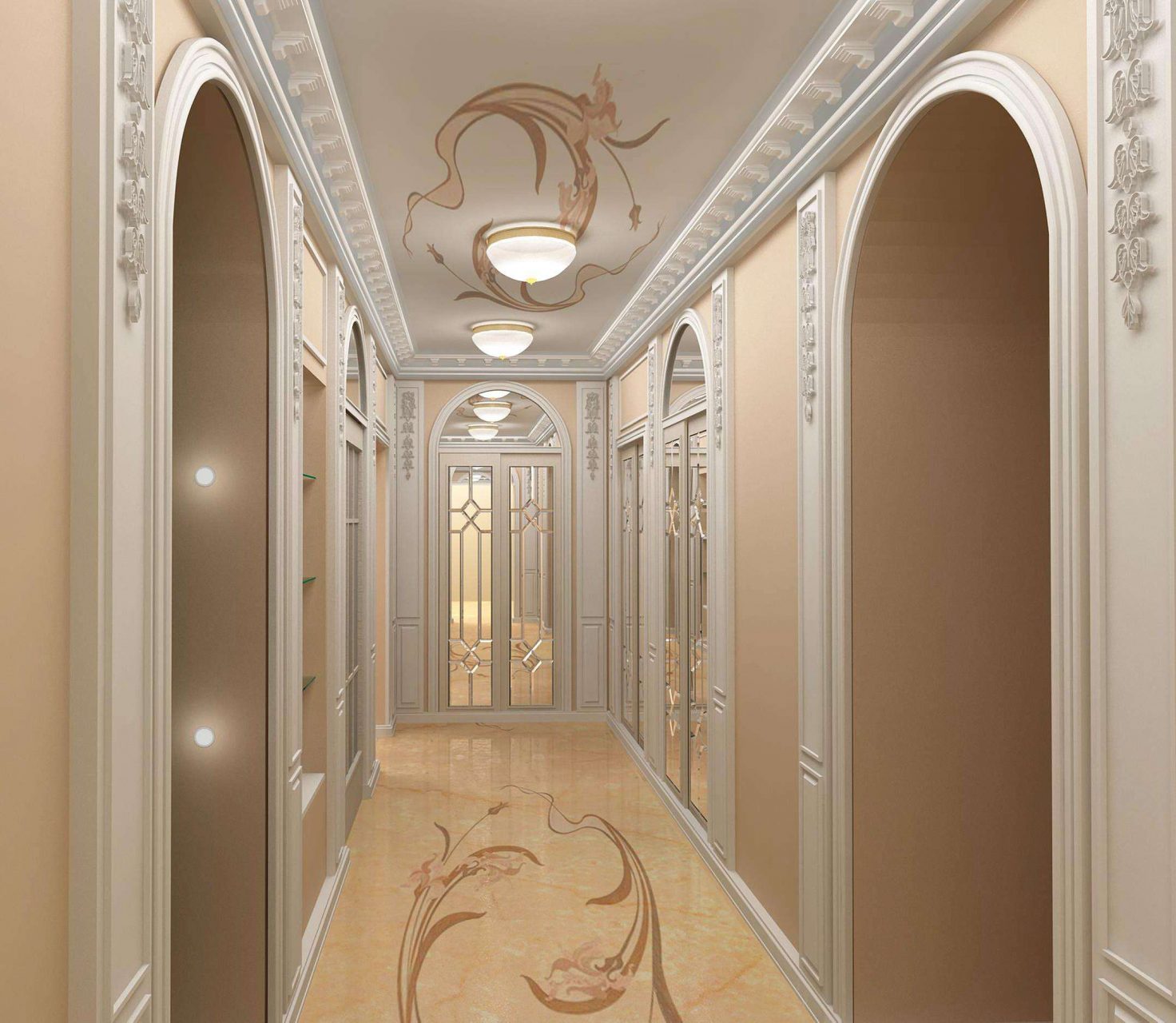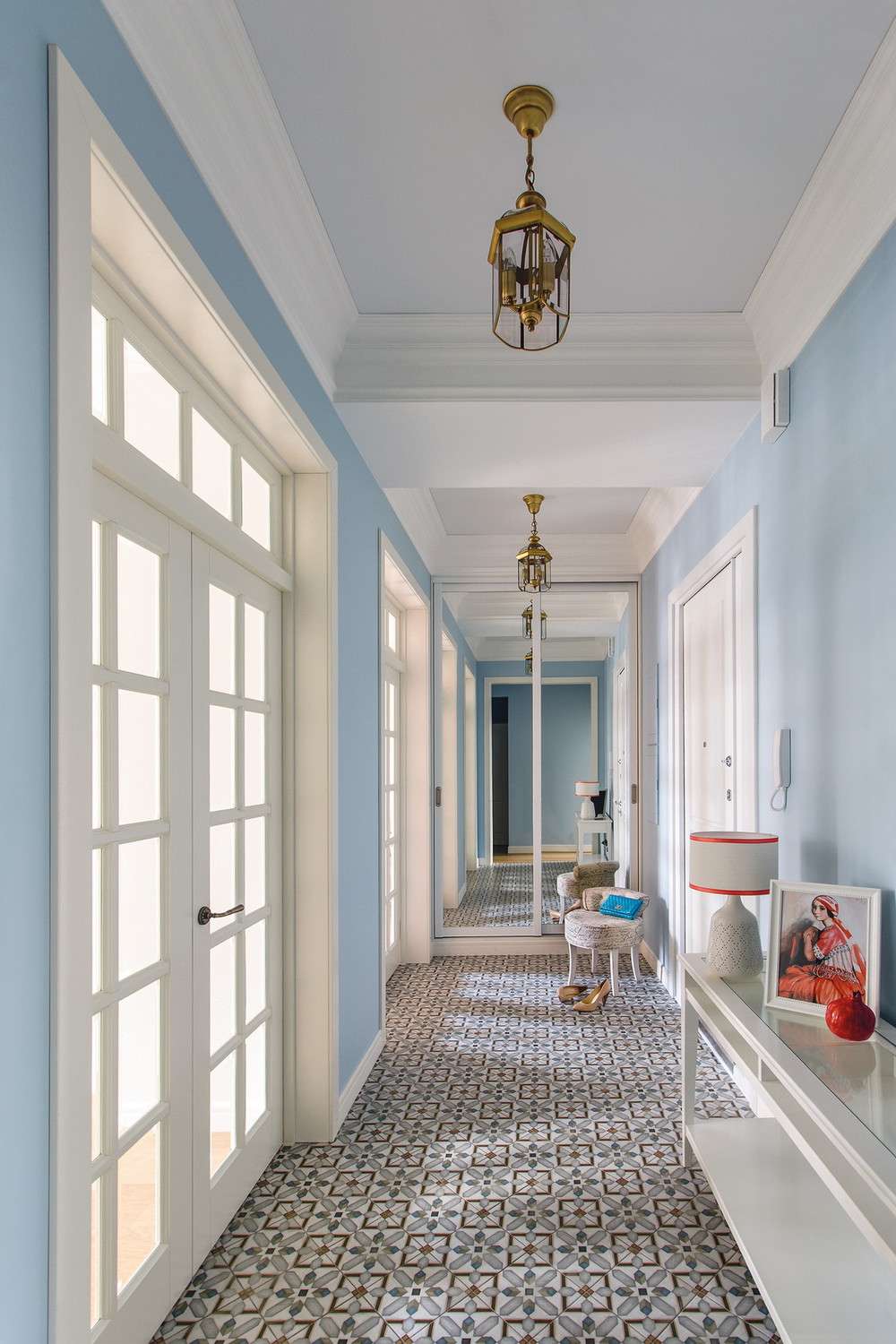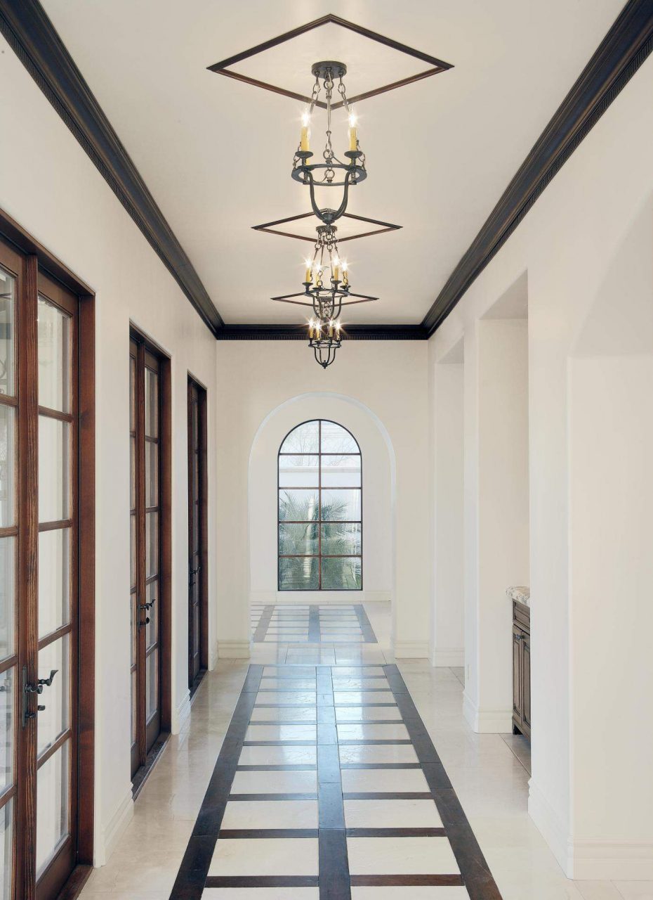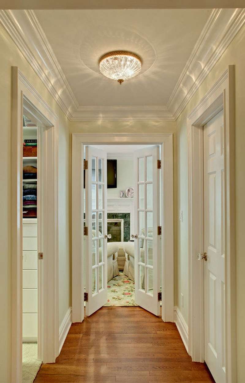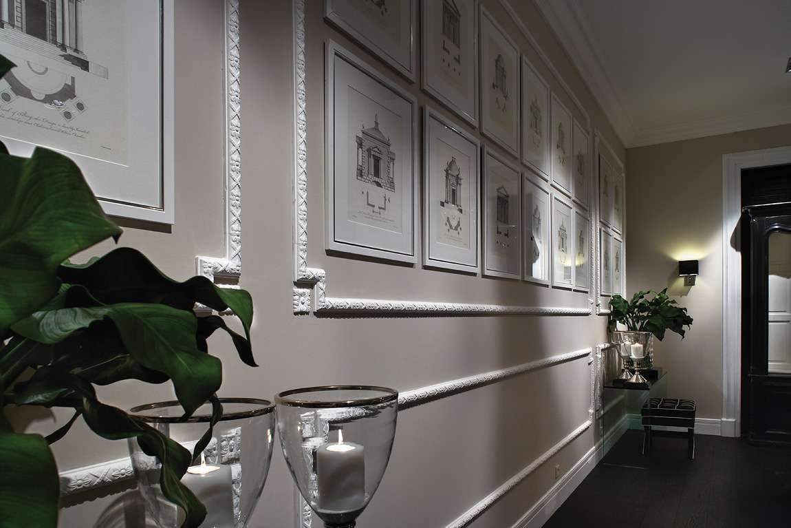 Em corredores estreitos e pouco iluminados, recomenda-se não usar uma baguete muito fina. Uma faixa estreita de design de interface criará o efeito de um espaço ainda mais estreito e desequilibrado. DPara proporções de equilíbrio, você pode escolher uma baguete de 6 ou 7 cm de largura.