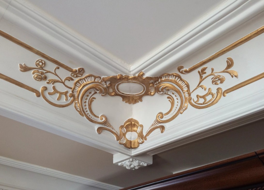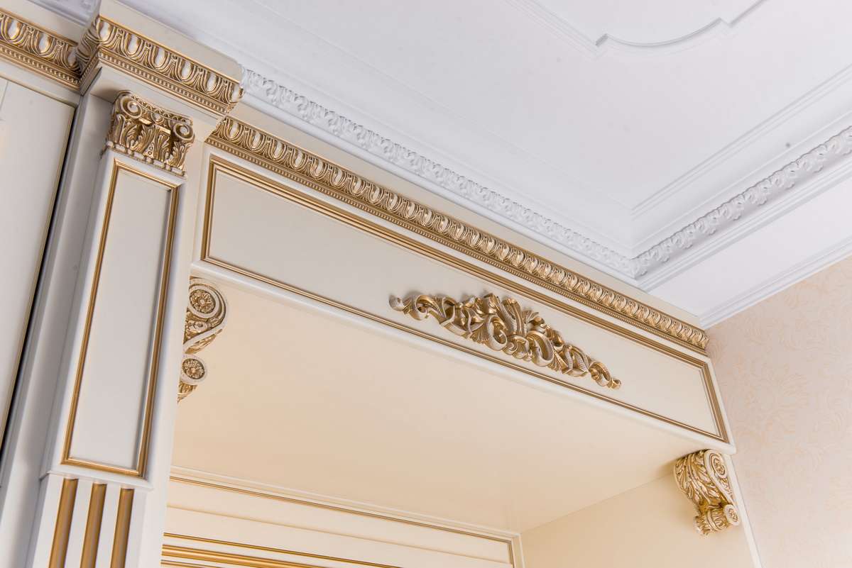 Baguete de gesso pode ser comprado pronto ou encomendado para fazê-lo. Moldagem de estuque é uma fidelidade às tradições ao criar um interior clássico.