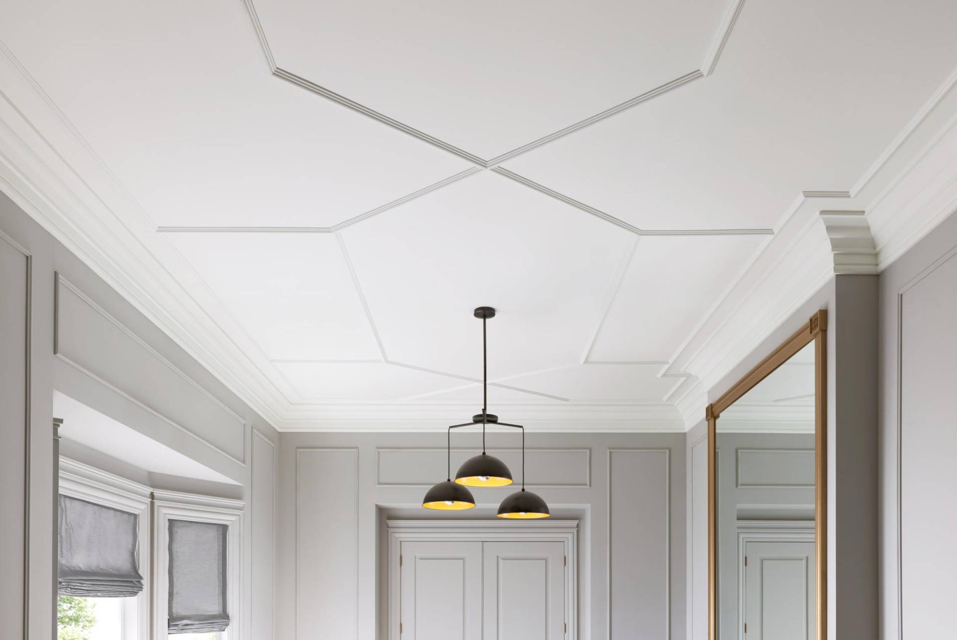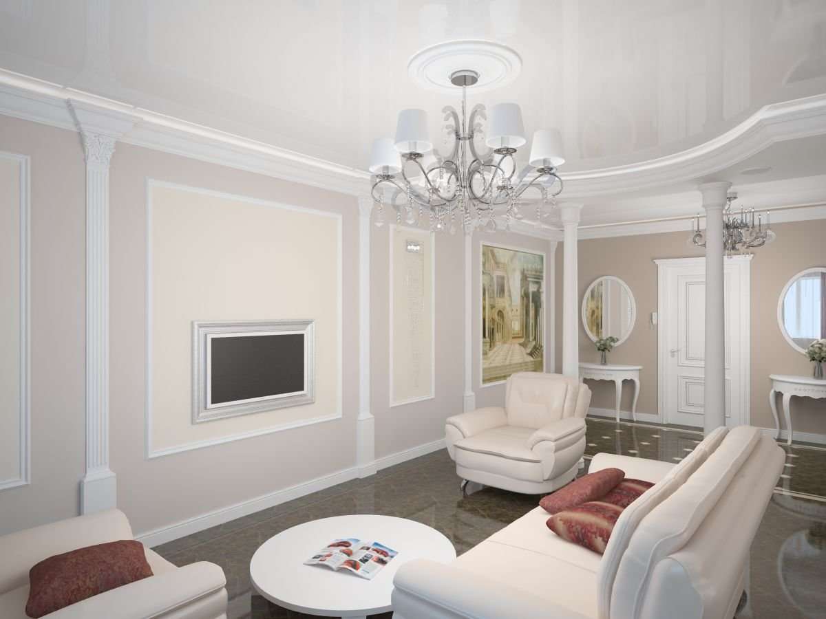 A junção das paredes e do teto nem sempre tem uma bela vista. Na maioria das vezes, o design com a ausência de filetes parece inacabado.