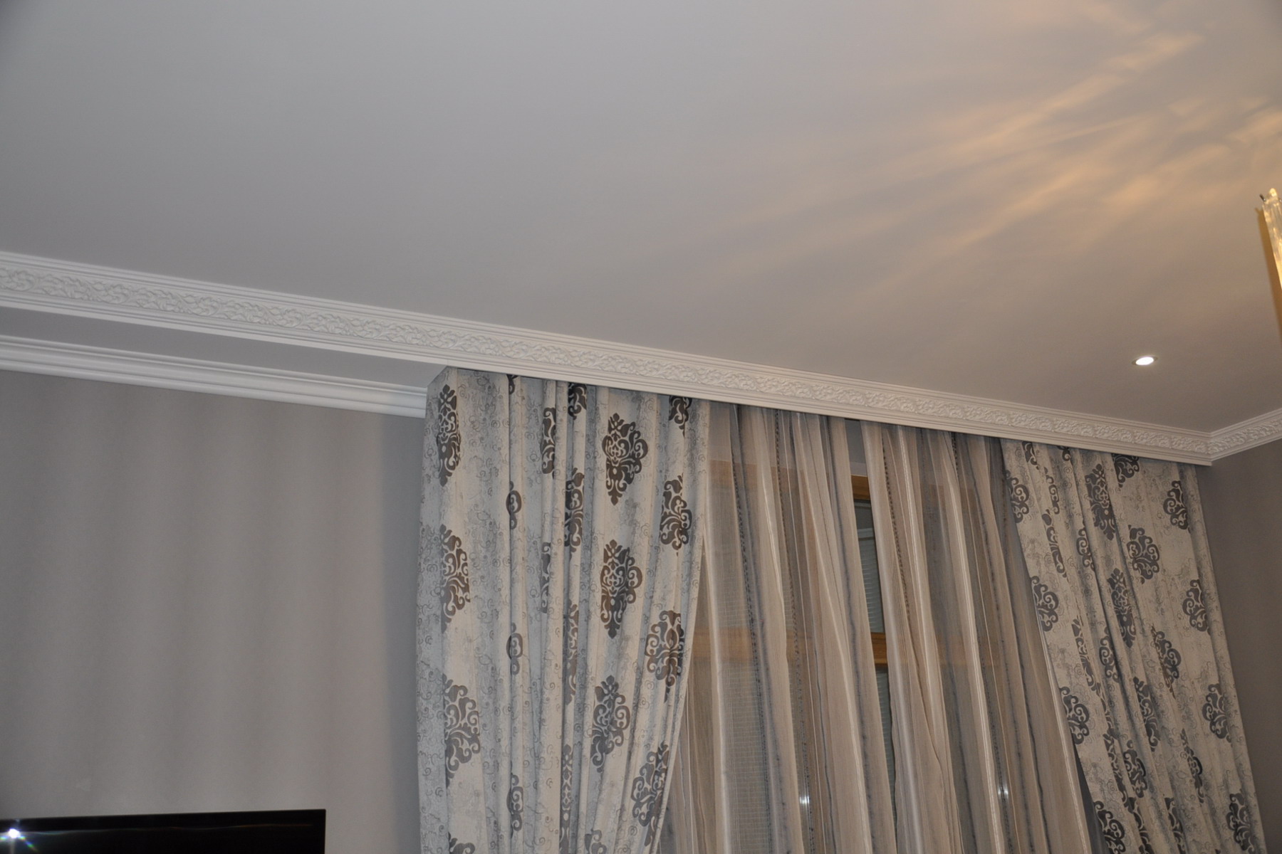 O plinto do teto também é muito prático - permite que você esconda o cabo da Internet, a fiação.