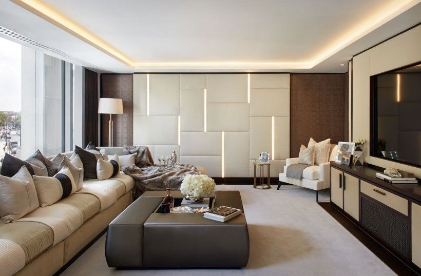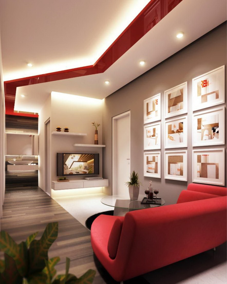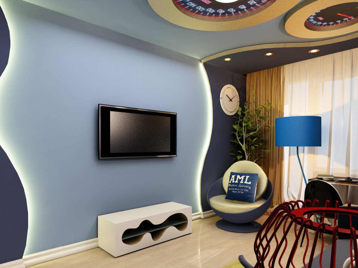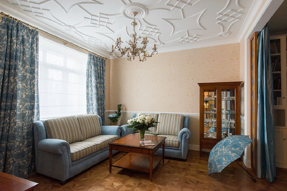 O teto da sala - uma parte importante do interior, afetando a percepção de todo o apartamento.