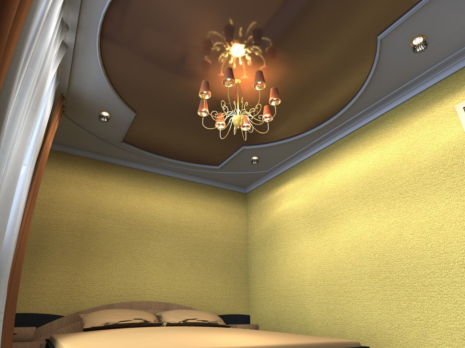 Se os tetos da sala são tão baixos que é uma pena perder alguns centímetros da estrutura de tensão, então você pode usar gesso veneziano com cera. No seu desenho o belo lustro resulta e a sensação da profundidade cria-se.