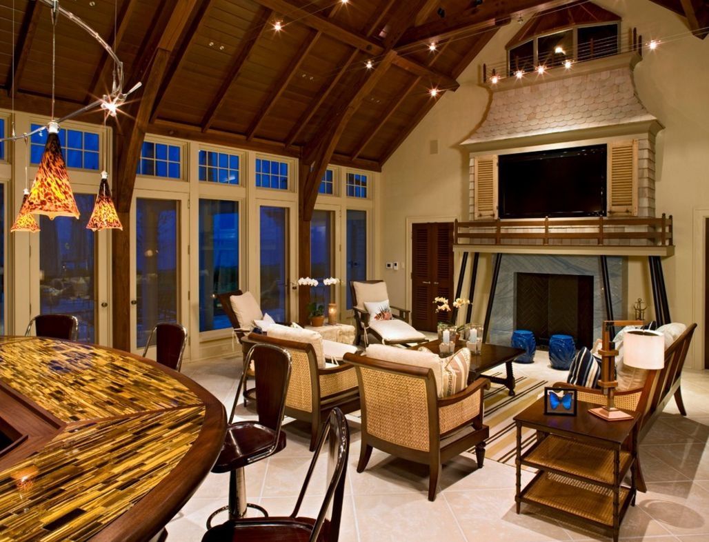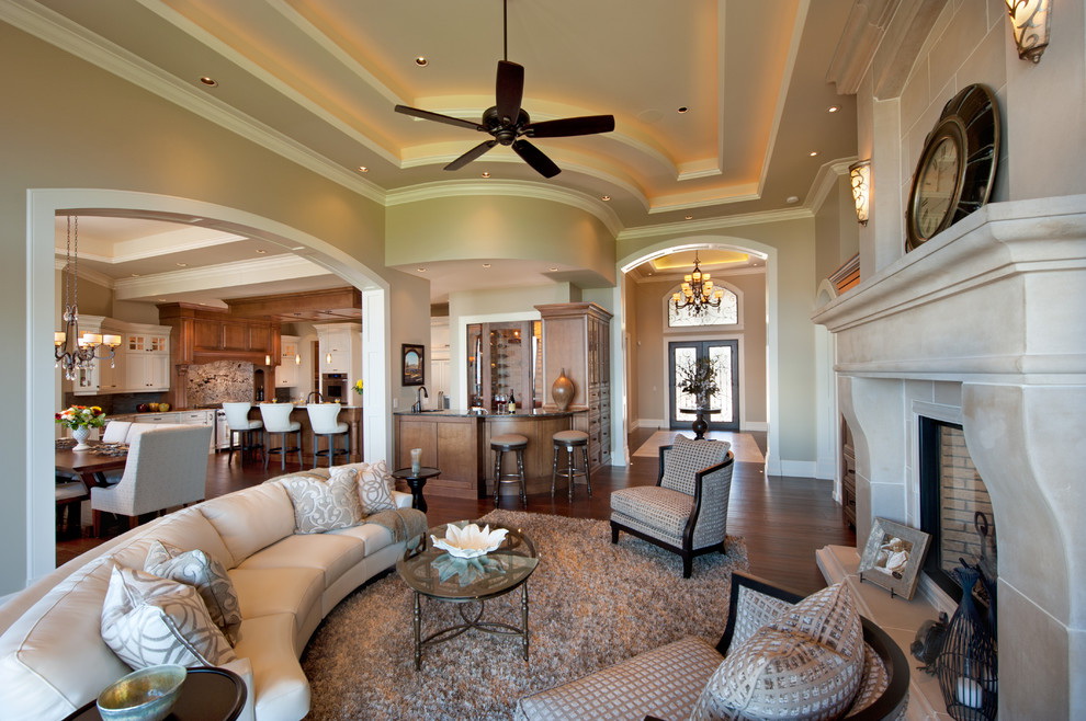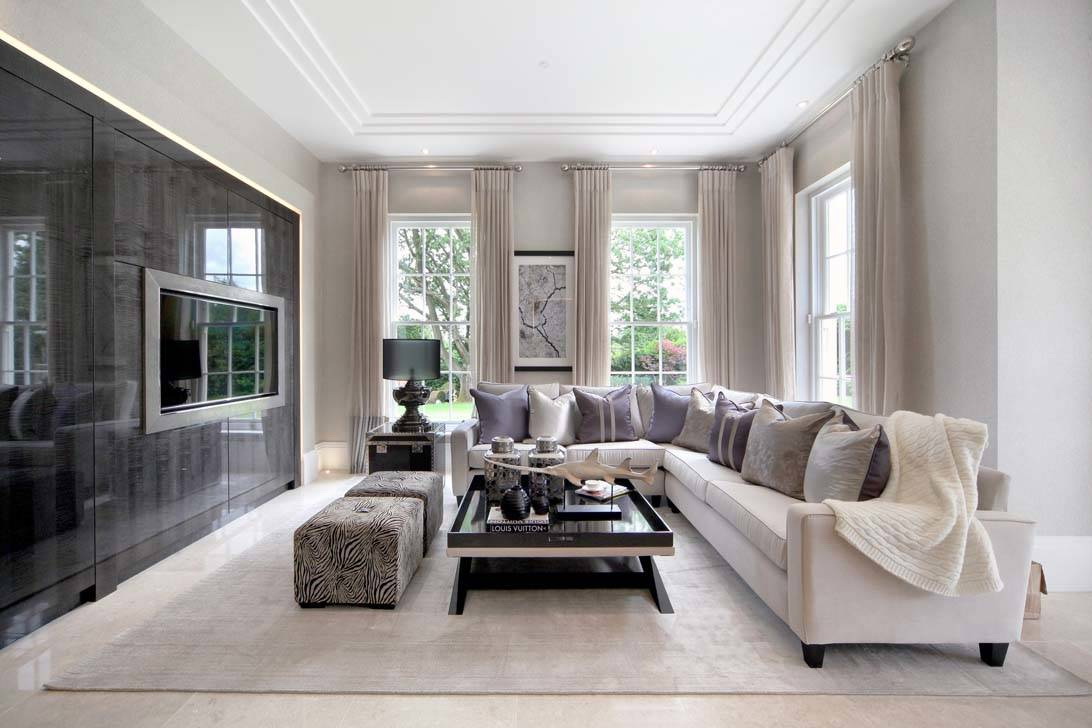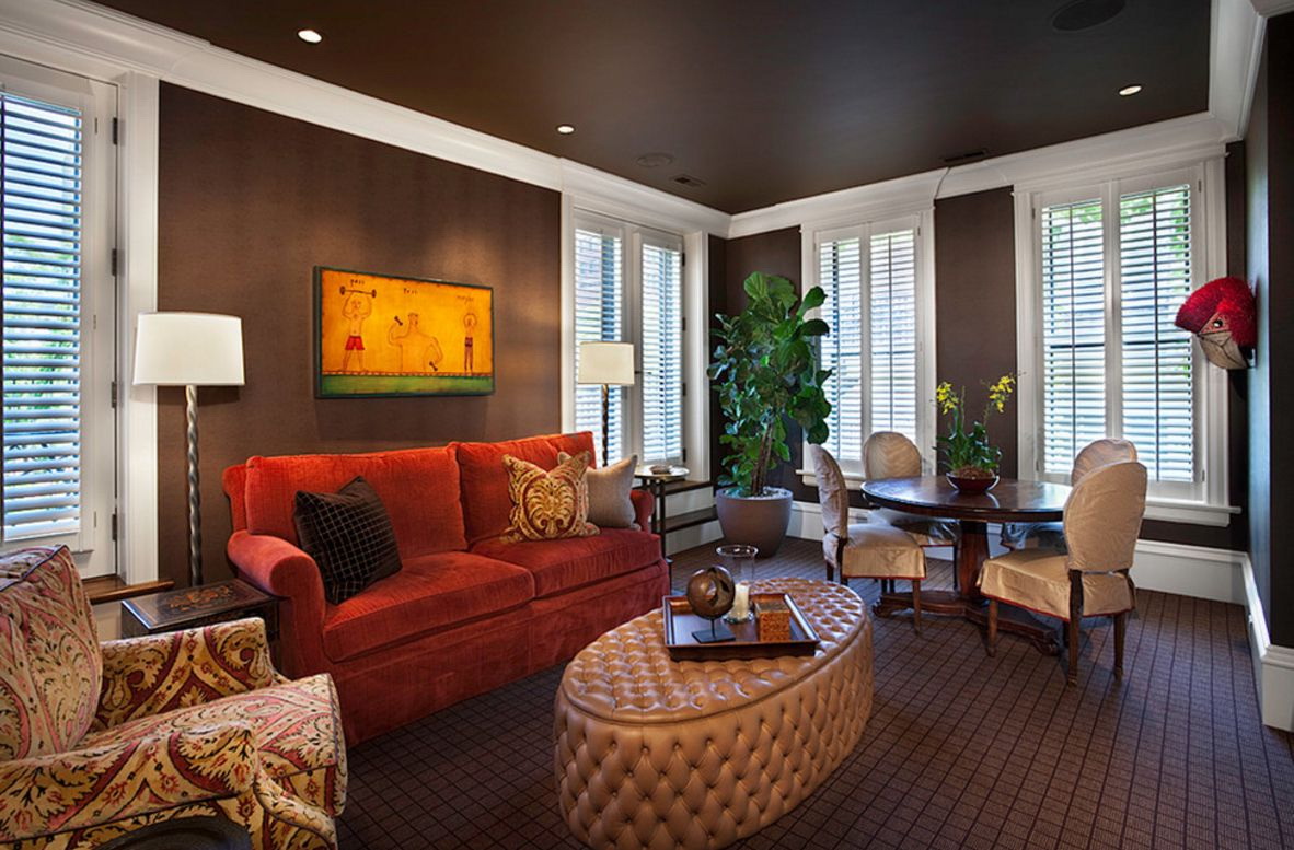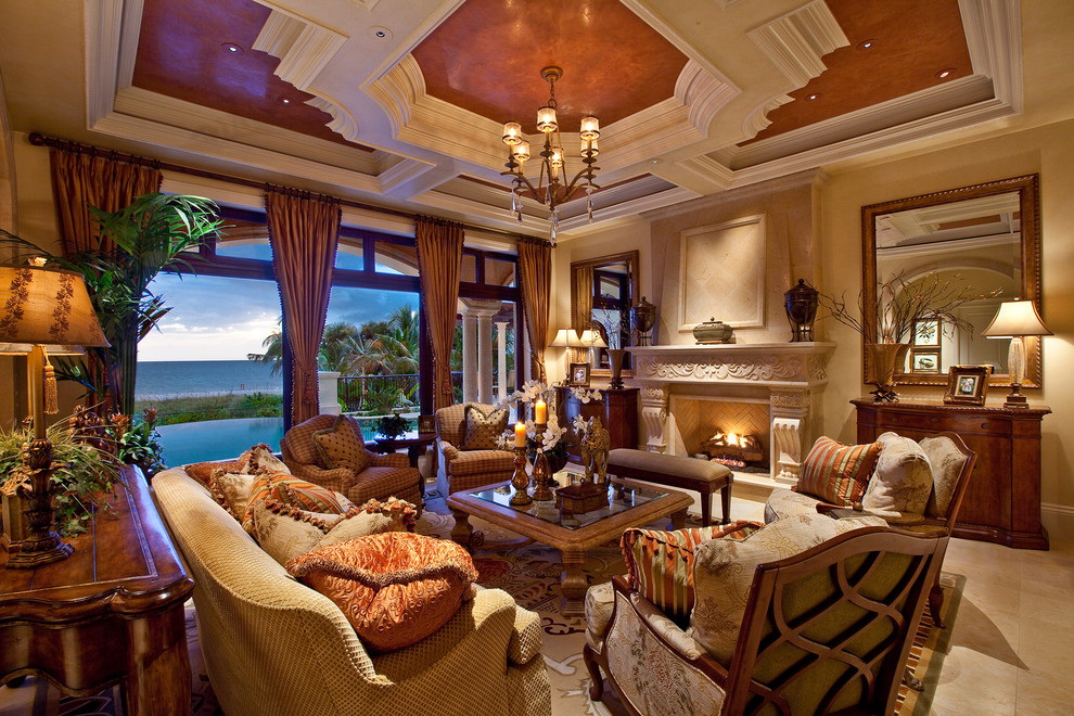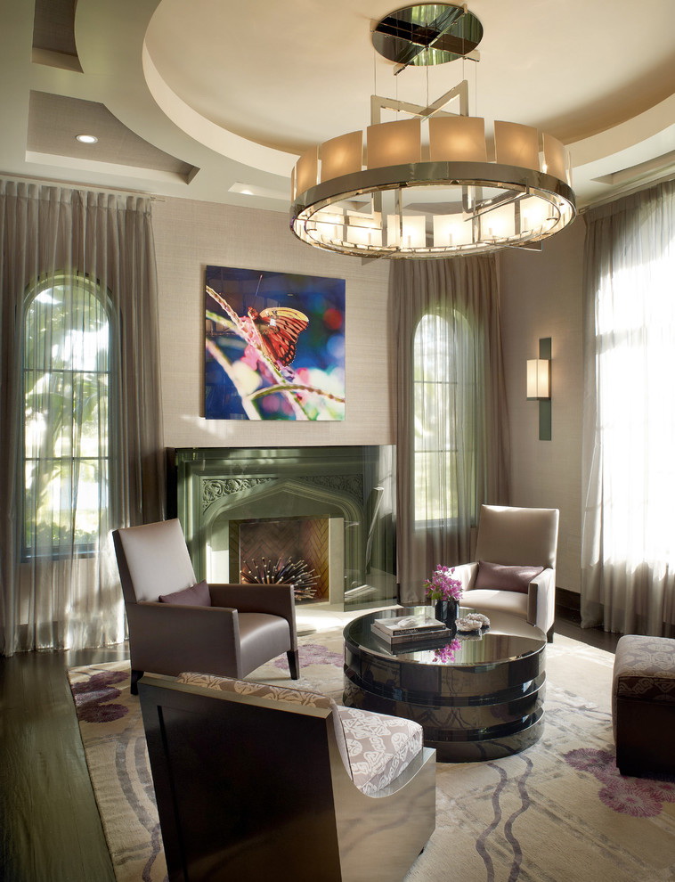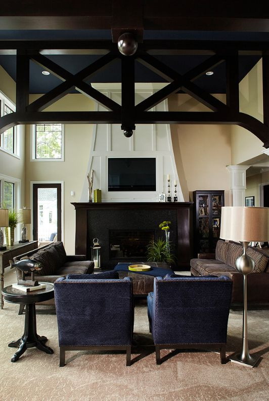 Certifique-se de considerar a altura da sala. Interior sólido clássico com grande mobiliário pode perder seu significado com tetos baixos, que se tornam ainda mais baixos com o uso de estruturas complexas em vários níveis.