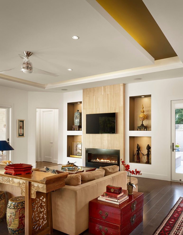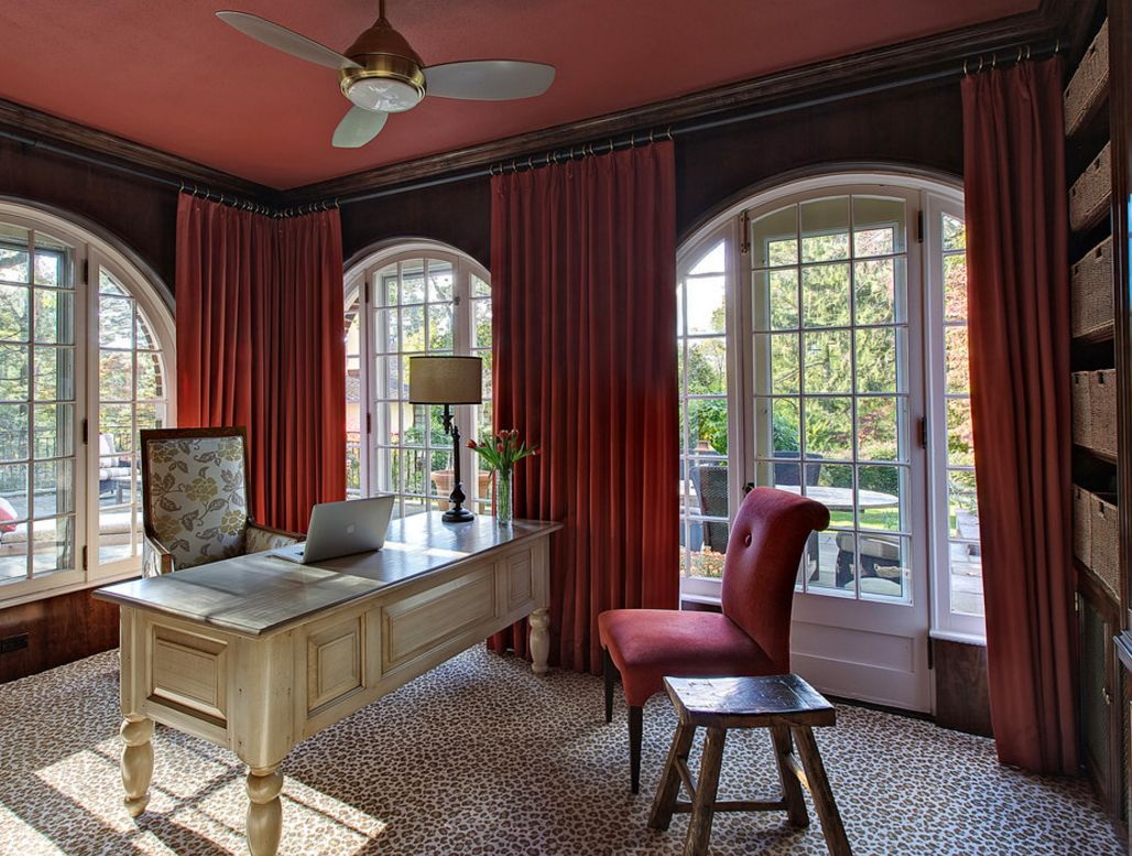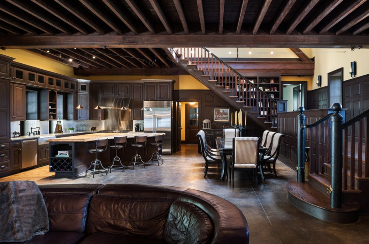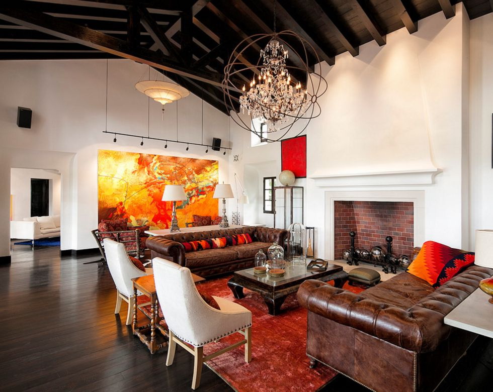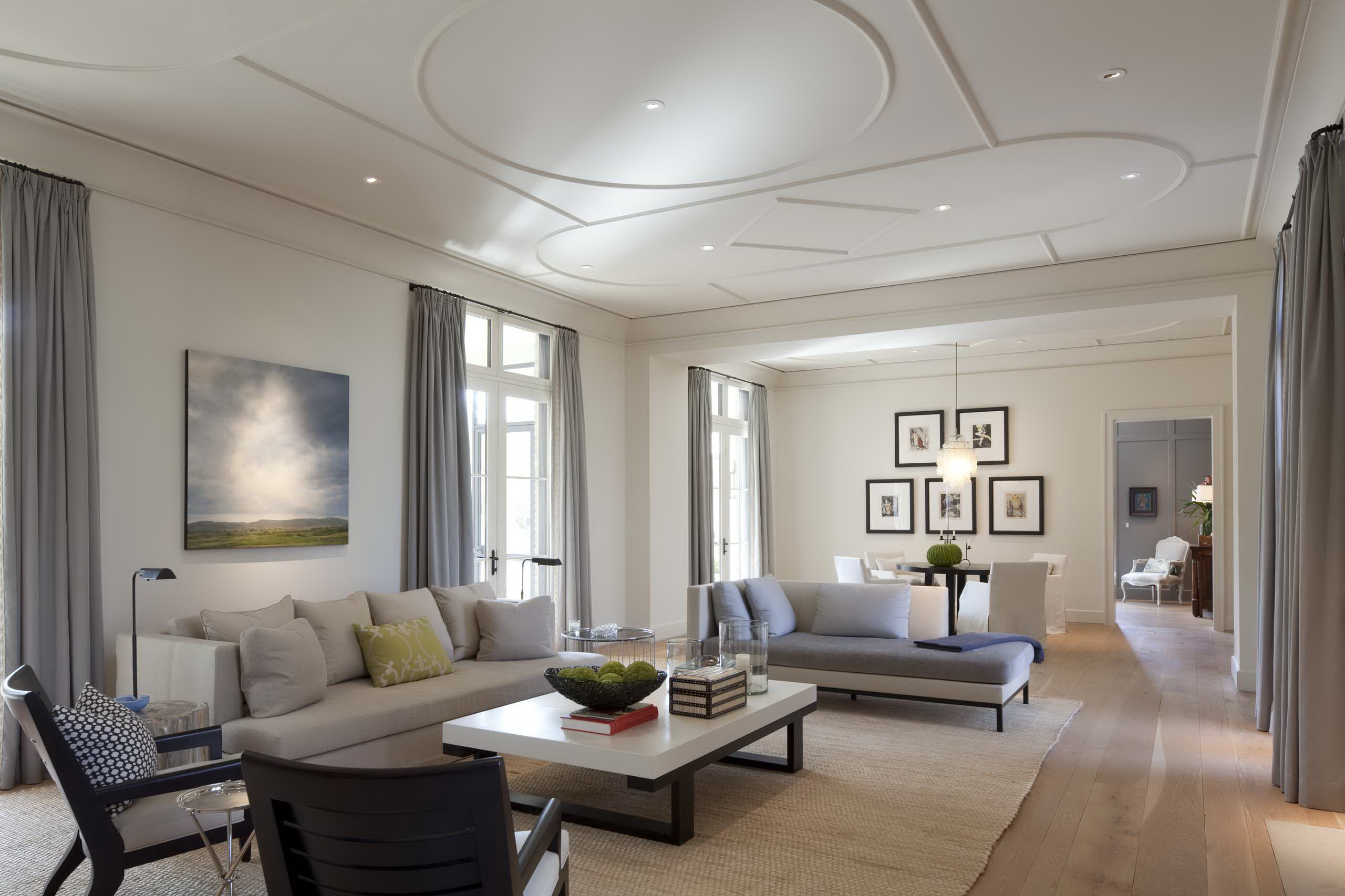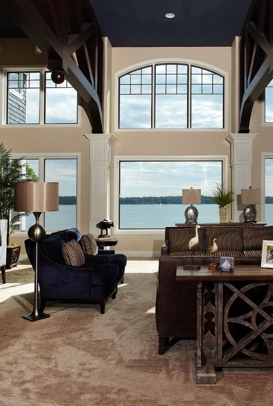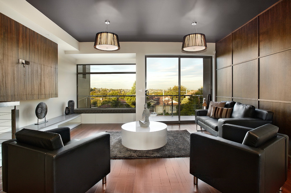 Certifique-se de considerar a altura da sala. Interior sólido clássico com grande mobiliário pode perder seu significado com tetos baixos, que se tornam ainda mais baixos com o uso de estruturas complexas em vários níveis.