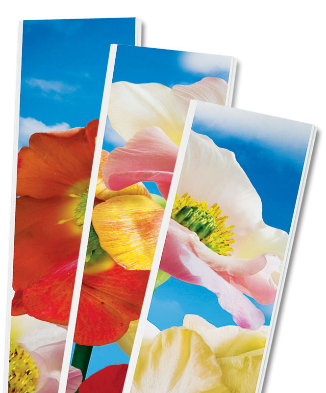 Este material pertence ao moderno, pode ter até 0,4 m de largura, e a superfície dos painéis é utilizada para projetar textura e brilho suaves. Este acabamento parece muito atraente, resistente ao desbotamento ao sol, não tóxico, pode ser submetido a limpeza molhada.