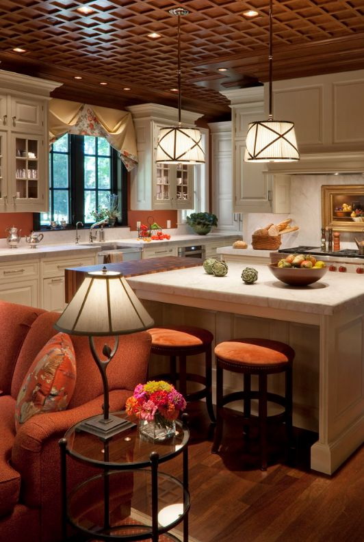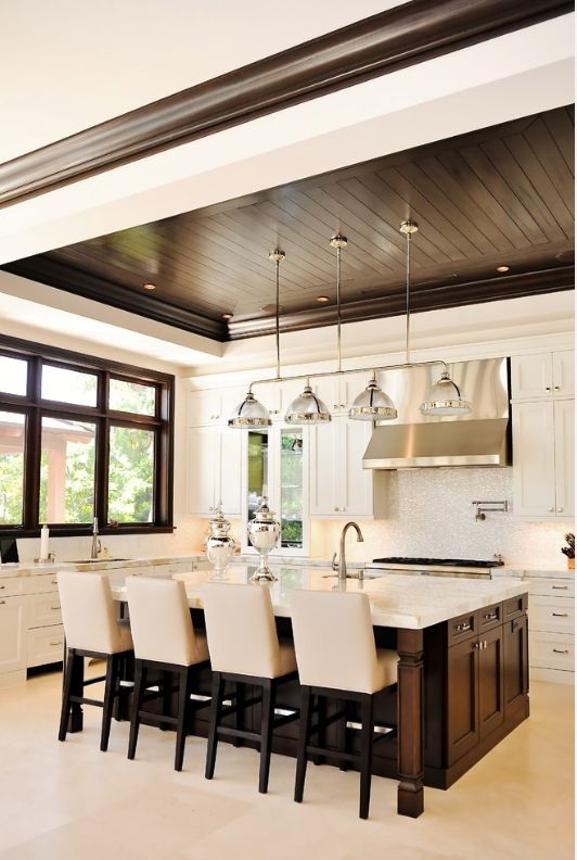 - quanto menos protuberâncias e multiestágios no modelo do teto da cozinha, mais fácil será cuidar dele;