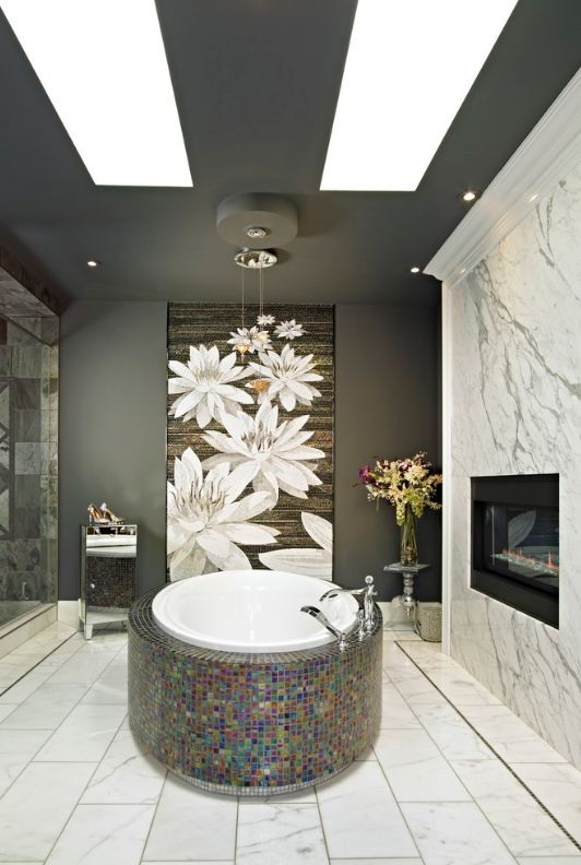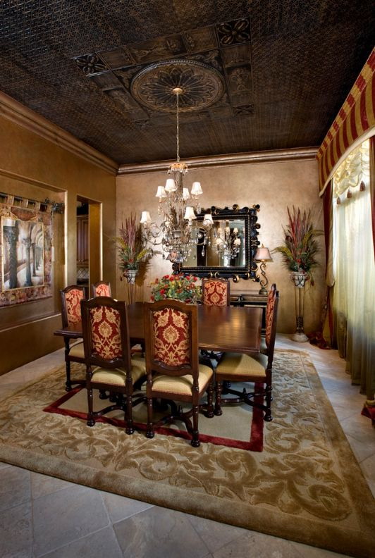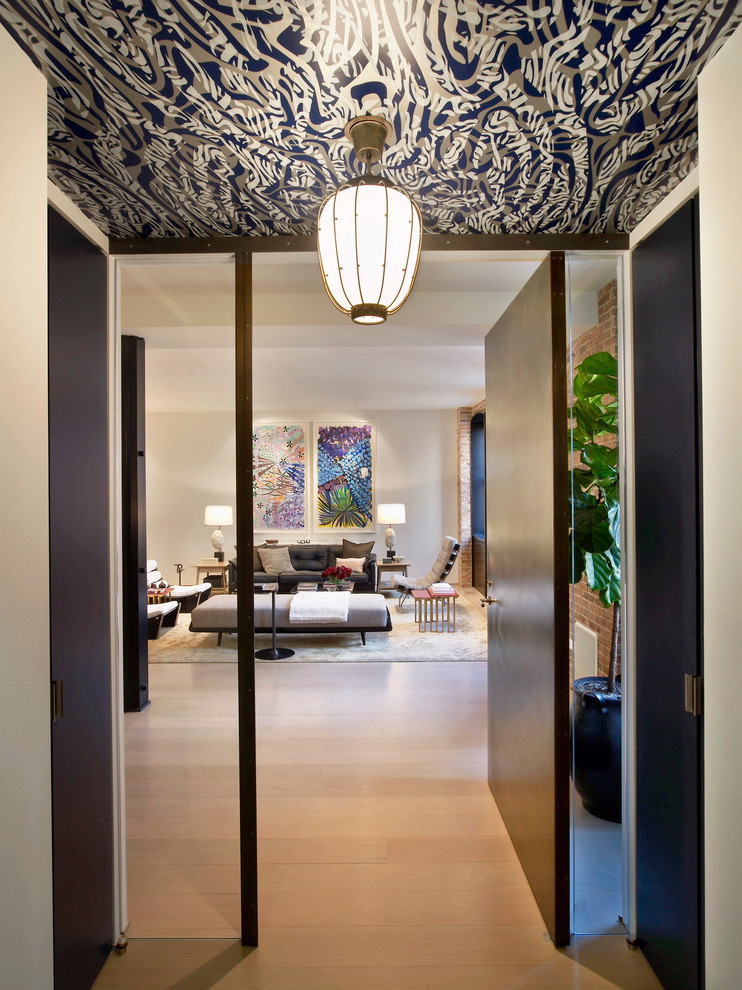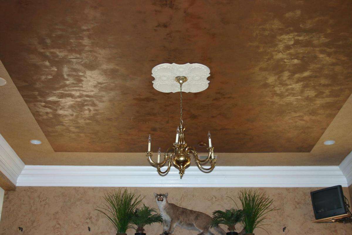Contribuir para um aumento visual na altura da sala pode espelhar. Muitas vezes é decorado com gravação a laser, elementos de gesso, padrão de jateamento.