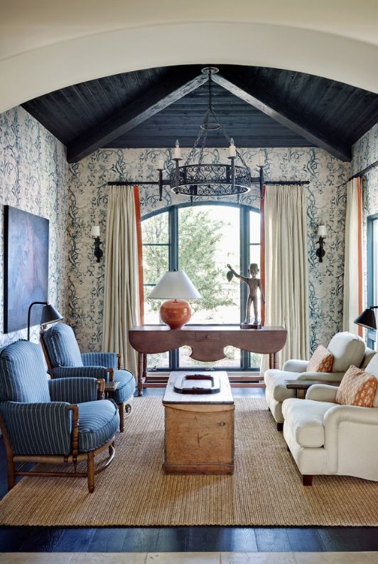 Mais frequentemente, papel de parede é usado para casas de veraneio ou em casa fora da cidade, mas também pode ser usado dentro de um apartamento comum. Direções simples interessantes de papel de parede de design de interiores: shebbi-chic, país, Provence, escandinavo. Eles não são exigentes, respeitam a naturalidade em materiais e sombras.