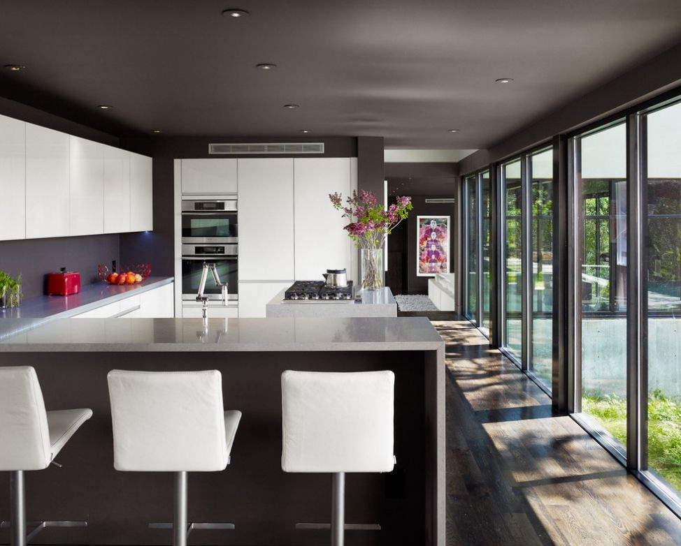 O design moderno é um campo tão amplo de aplicação de várias tecnologias e materiais que você pode implementar praticamente qualquer ideia. A urbanização e o glamour desapareceram recentemente em segundo plano, dando lugar à concisão e à simplicidade das formas de realização construtivas.