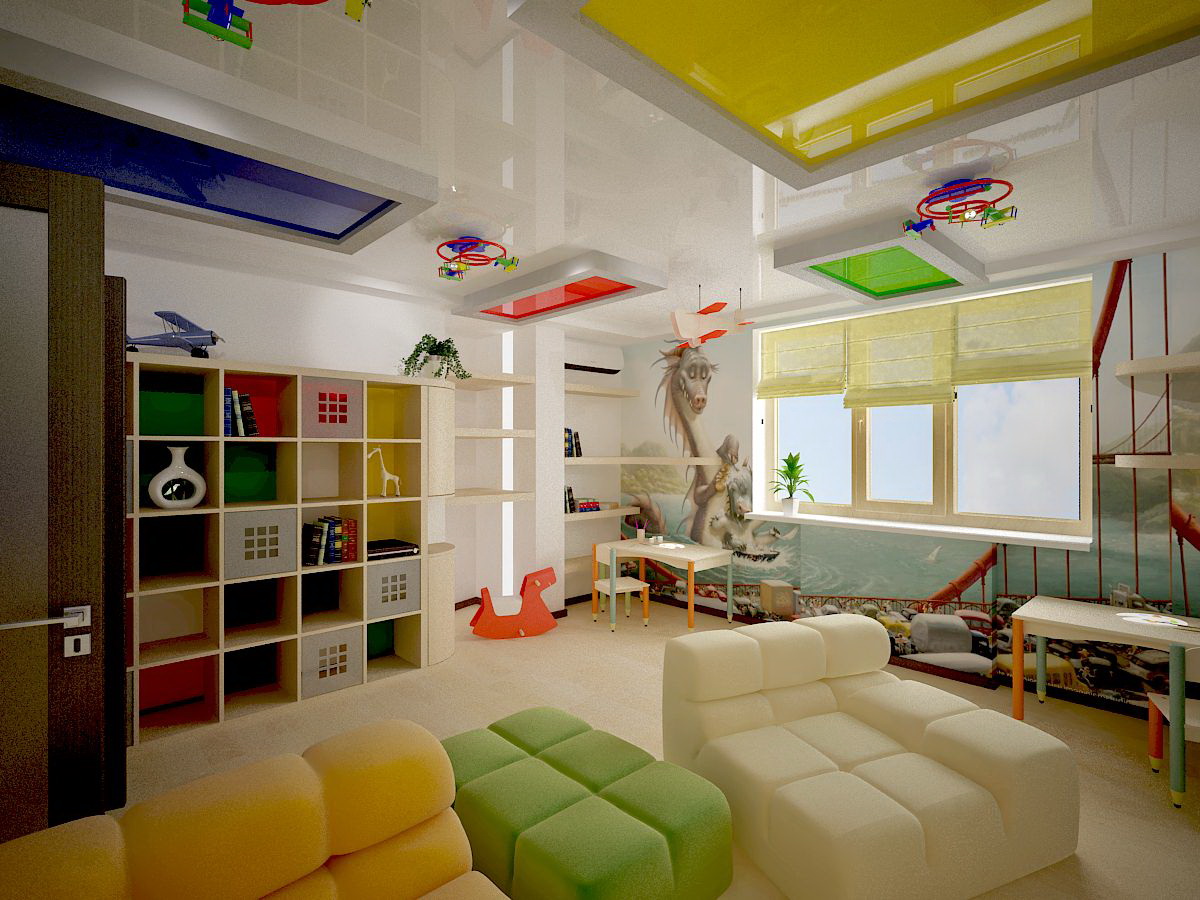 As tintas aquosas podem ser de cores diferentes, o que permite aplicar uma combinação de vários tons. Para o teto se encaixam como brilhante, familiar ao olho, tons e rico brilhante.