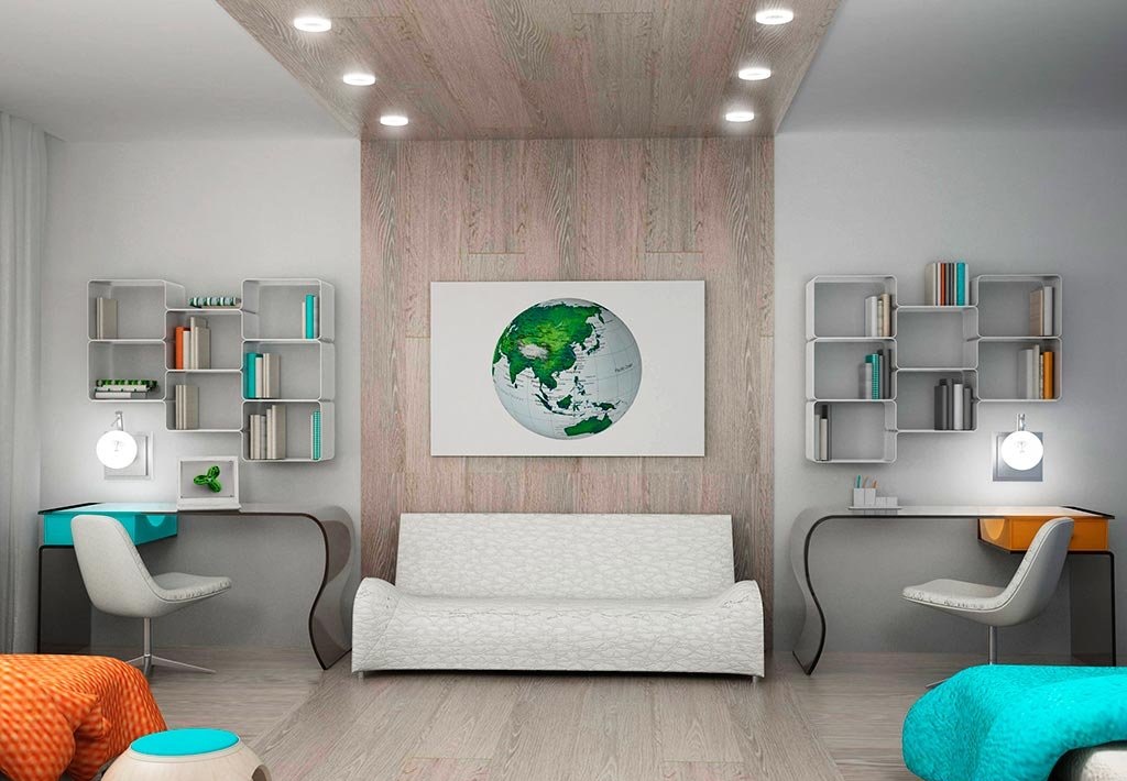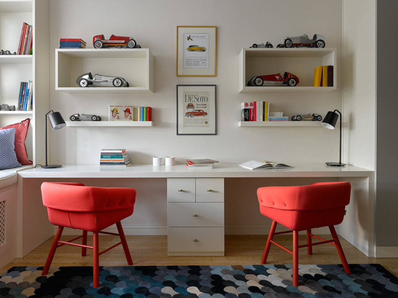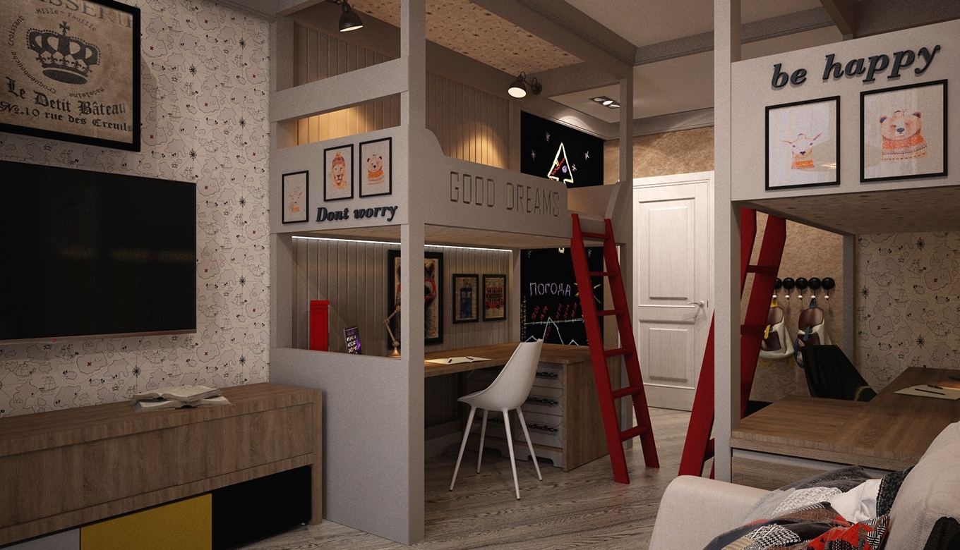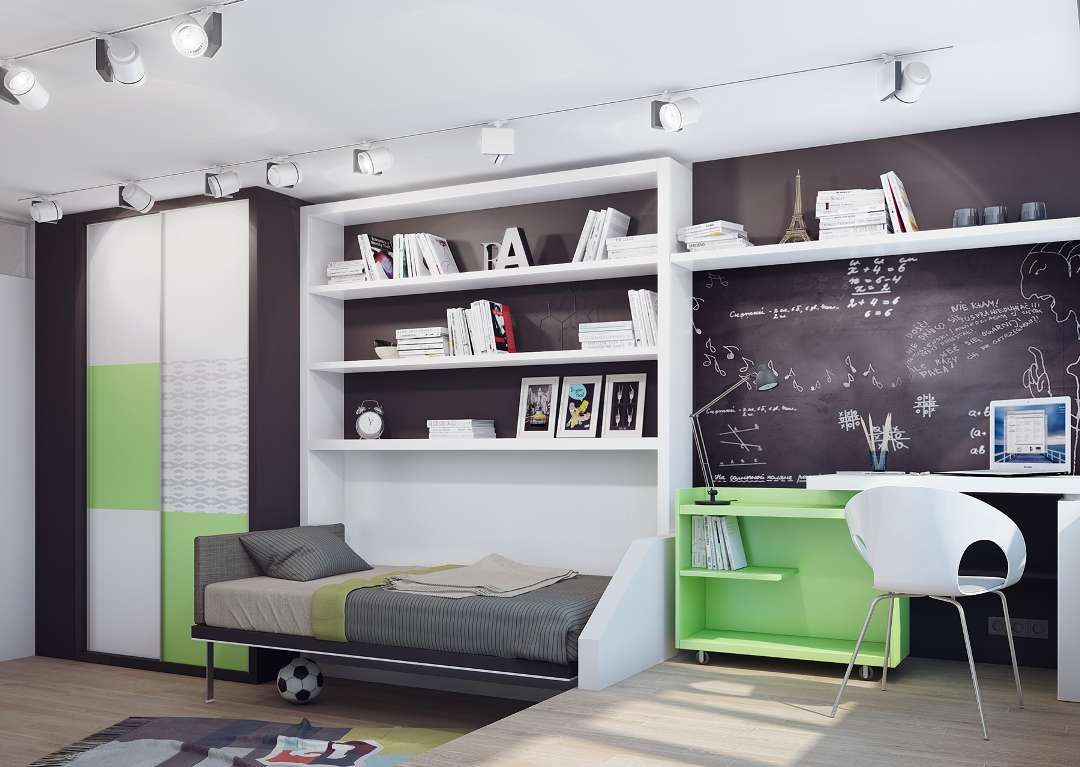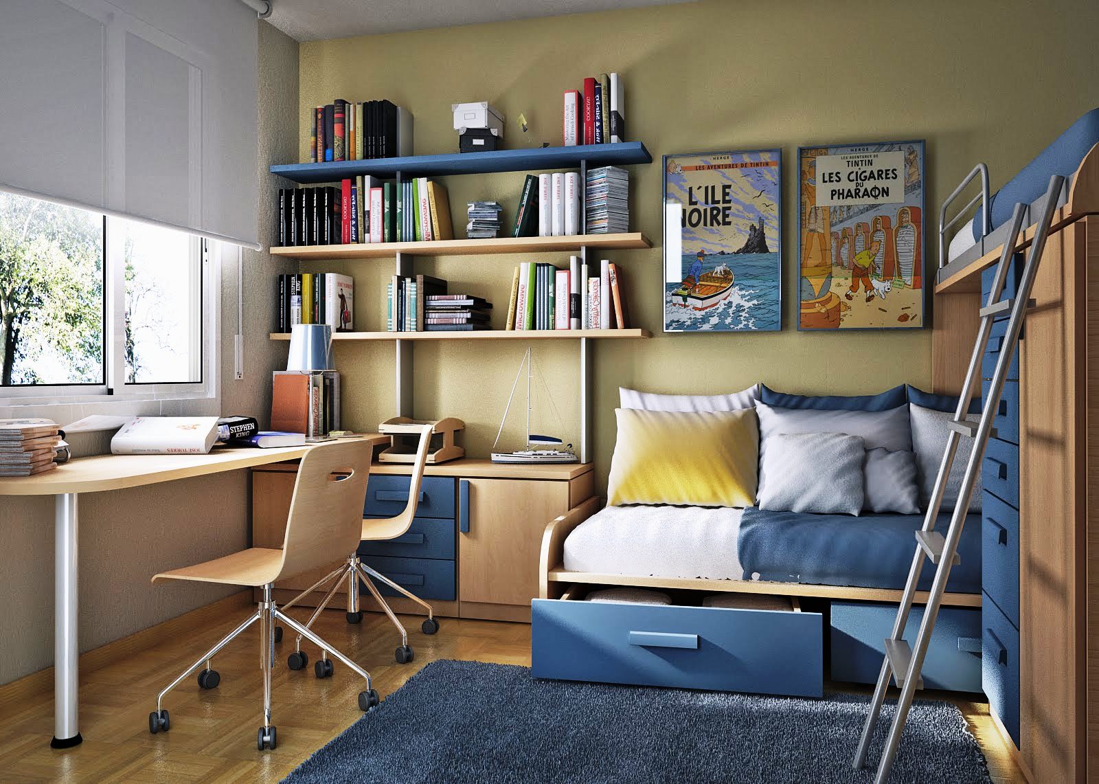 Os quartos dos meninos são caracterizados por zoneamento claro, já que seu pensamento é estruturado de tal forma que eles podem fazer várias coisas ao mesmo tempo. Ao fazer o dever de casa, isso é uma desvantagem, já que a criança não se concentra em uma tarefa específica. Portanto, a área de trabalho do aluno deve ser o mais concisa possível e não conter objetos que possam distraí-lo.