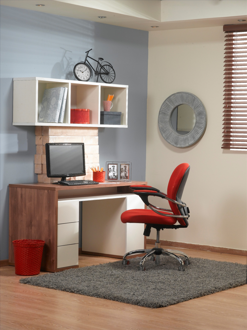 Para que a criança goste de estudar nesta parte da sala, dê-lhe a oportunidade de comprar decorações para ela - pastas para cadernos, um calendário, agendas, lanternas em uma prateleira ou molduras para fotos. Então a individualidade do aluno será sentida, e será mais fácil para ele lidar com o dever de casa.