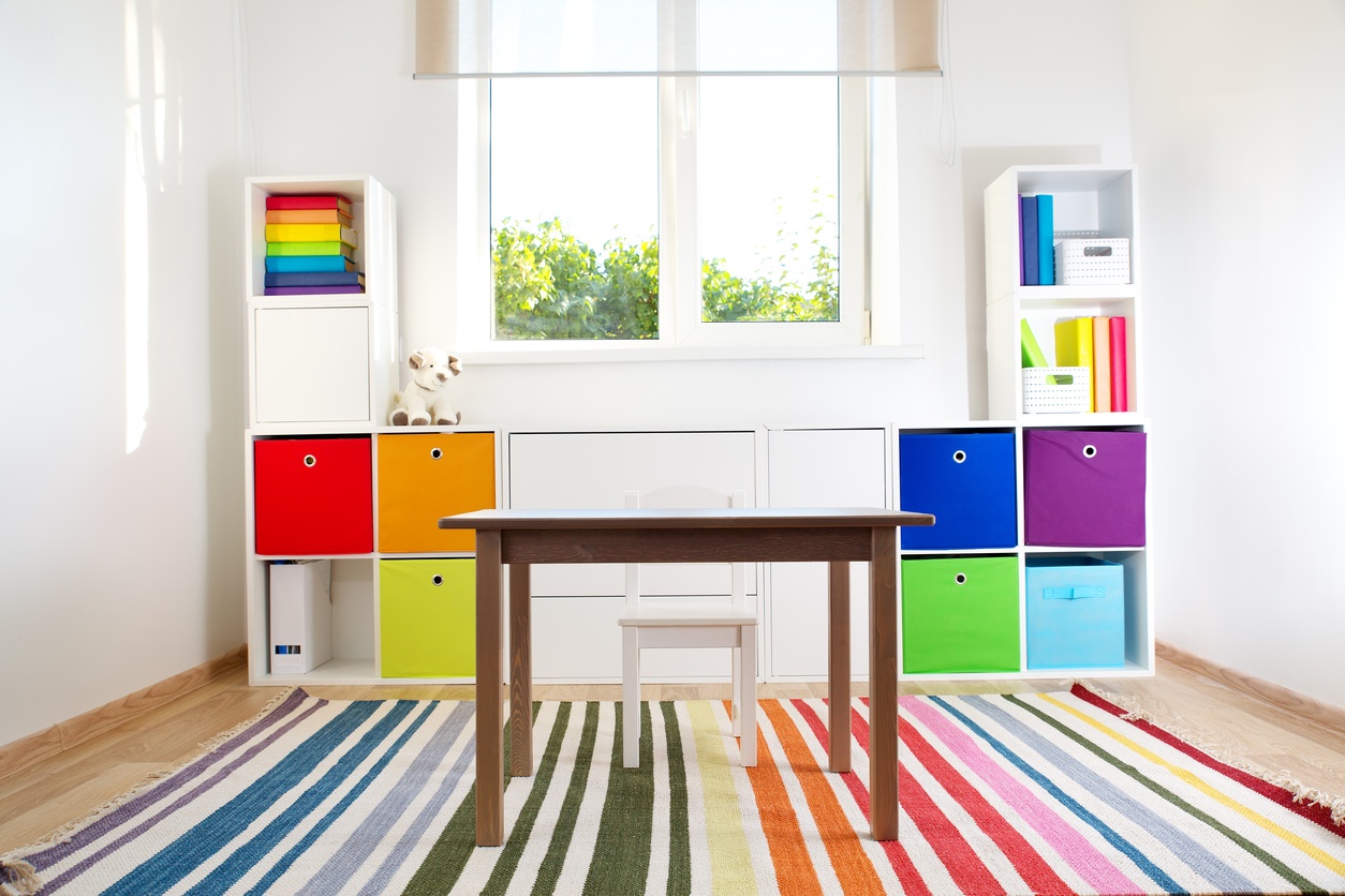 Uma criança pequena com menos de 10 anos é importante que ele tivesse um lugar para brincar. Nesta zona deve ser um baú ou armário com brinquedos macios carpetesaco de feijão ou sofá. É necessário que esta parte da sala seja tão separada quanto possível da área de estudo, para que a criança não distraia da escola ou sofra estresse ao brincar. Em nenhum caso, não pode comprar um espaço de armazenamento único para brinquedos e livros com livros didáticos. Isso pode criar discórdia no cronograma do aluno.