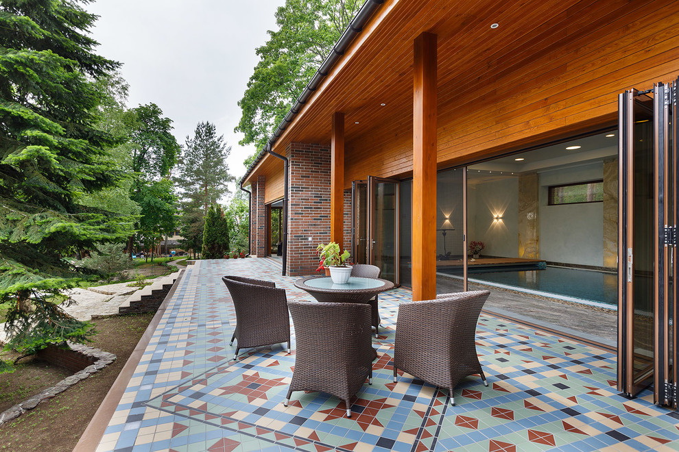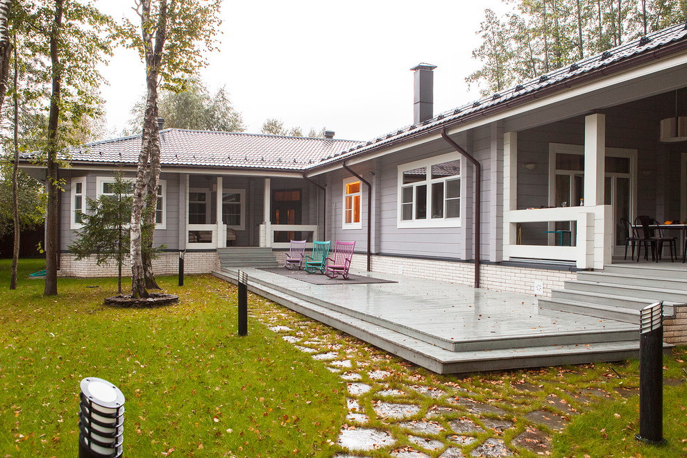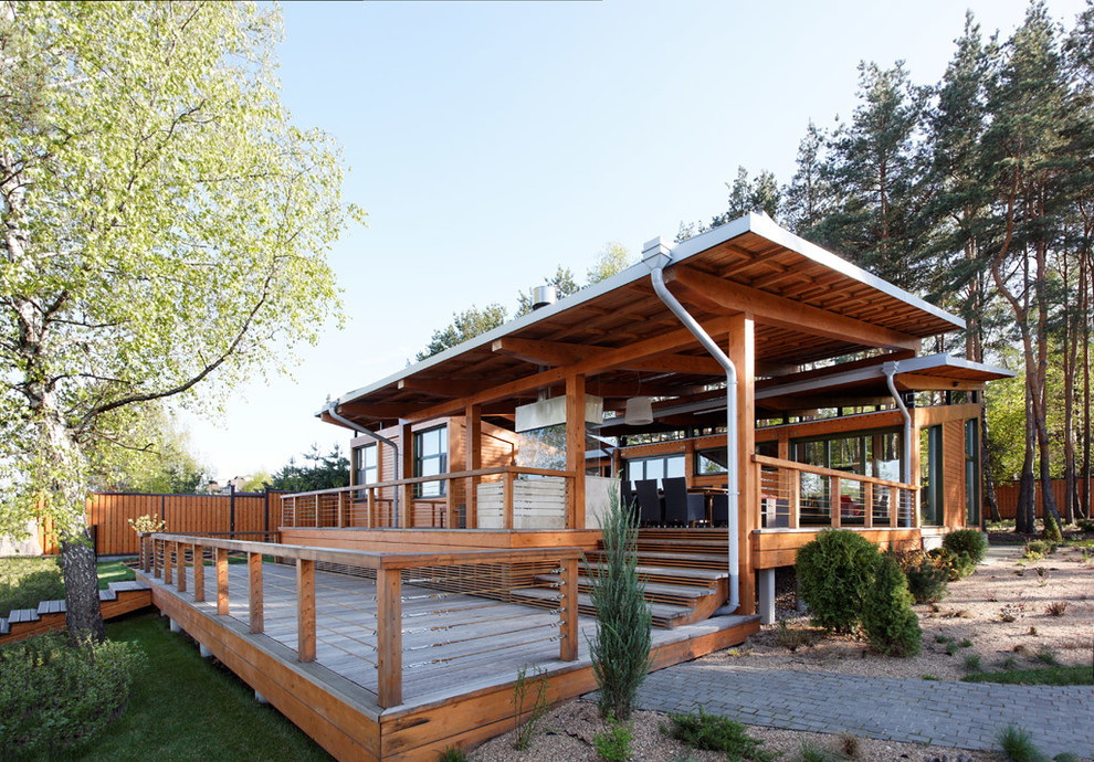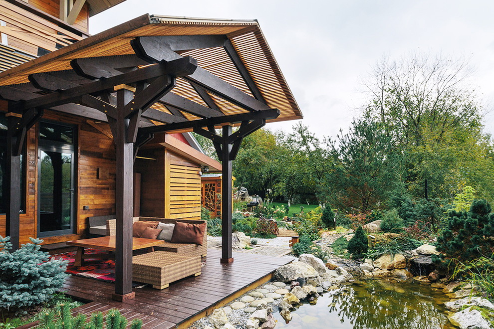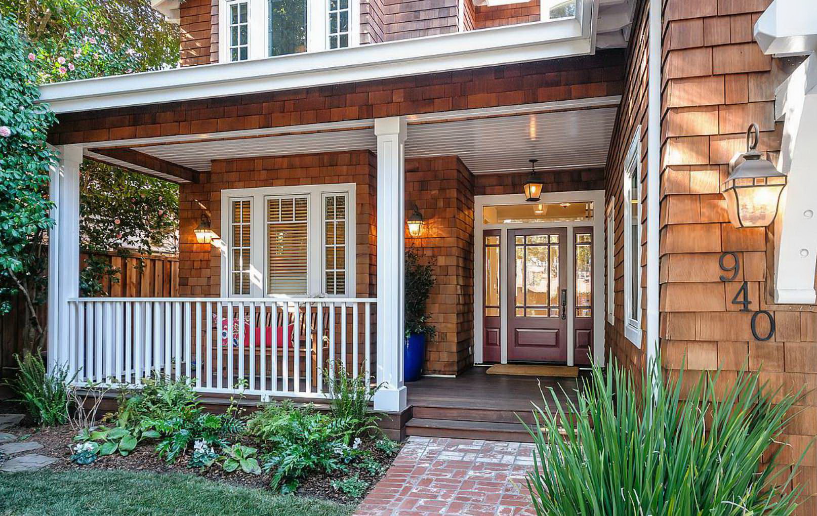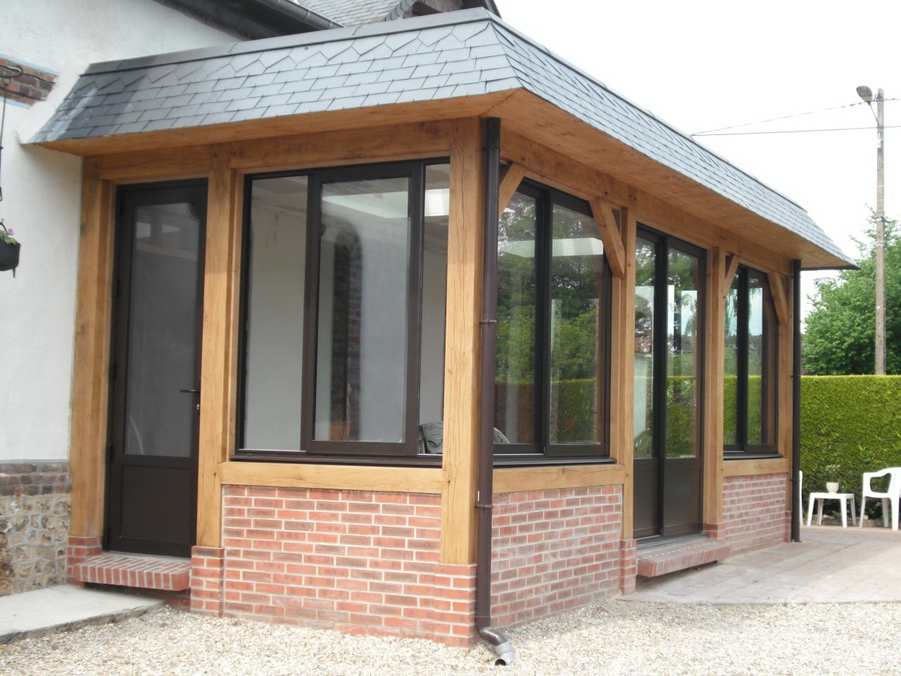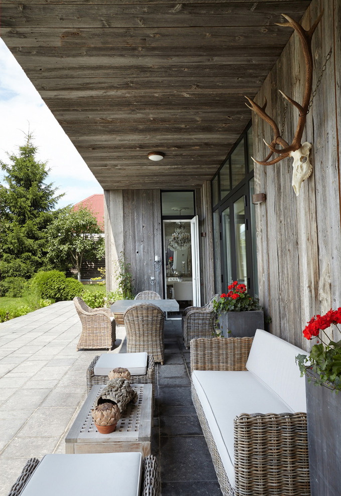Quando o exterior terminar, a varanda deverá ter em conta o estilo geral da área local e os edifícios próximos. Dependendo do tipo de materiais utilizados para o projeto da fachada, tapume, tijolo, gesso fachada, madeira maciça eco-friendly: larch, pinho, freixo, faia ou carvalho são usados para decoração exterior do pórtico.