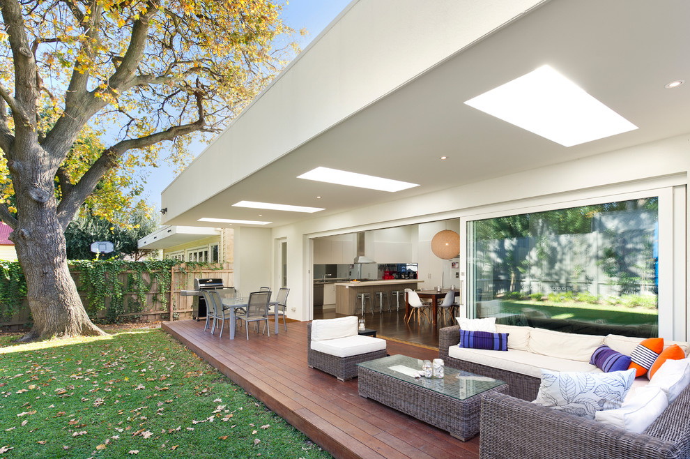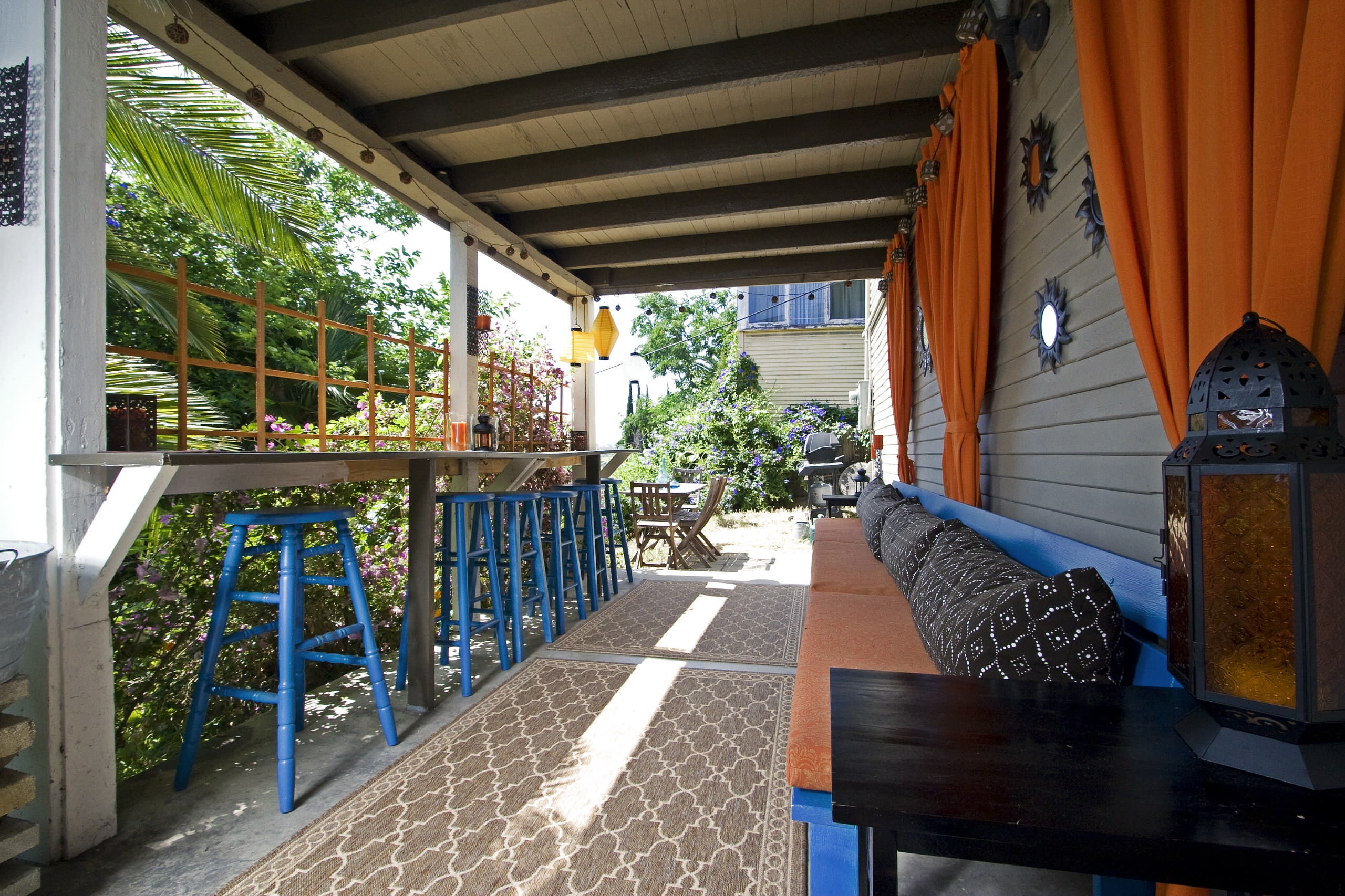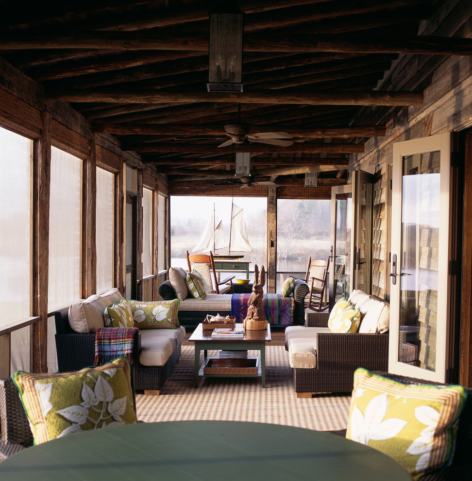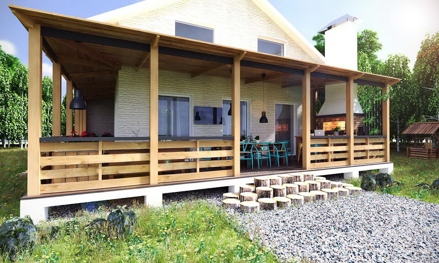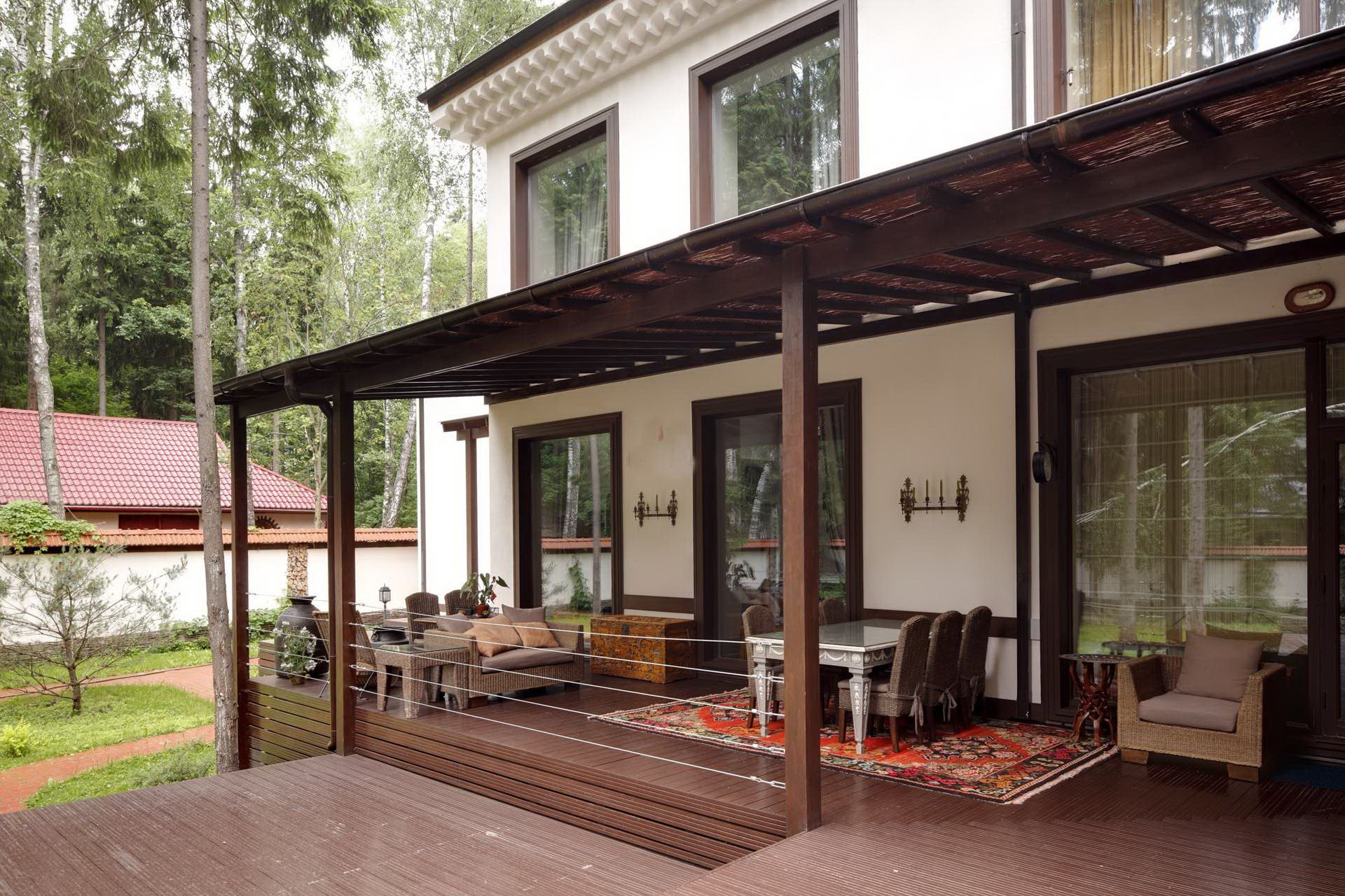 Note-se que a varanda pode apenas parcialmente, principalmente no verão, servir como sala de jantar e sala de estar. Portanto, um excesso de móveis e decoração nesta área para qualquer coisa.