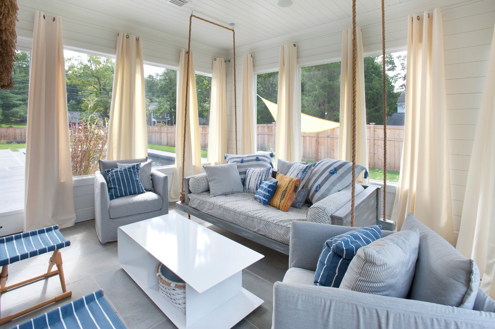 Varanda, sala de jantar e sala de estar varanda