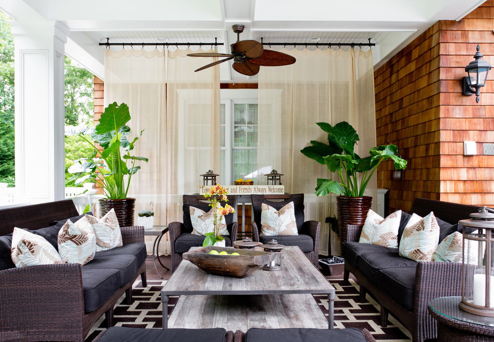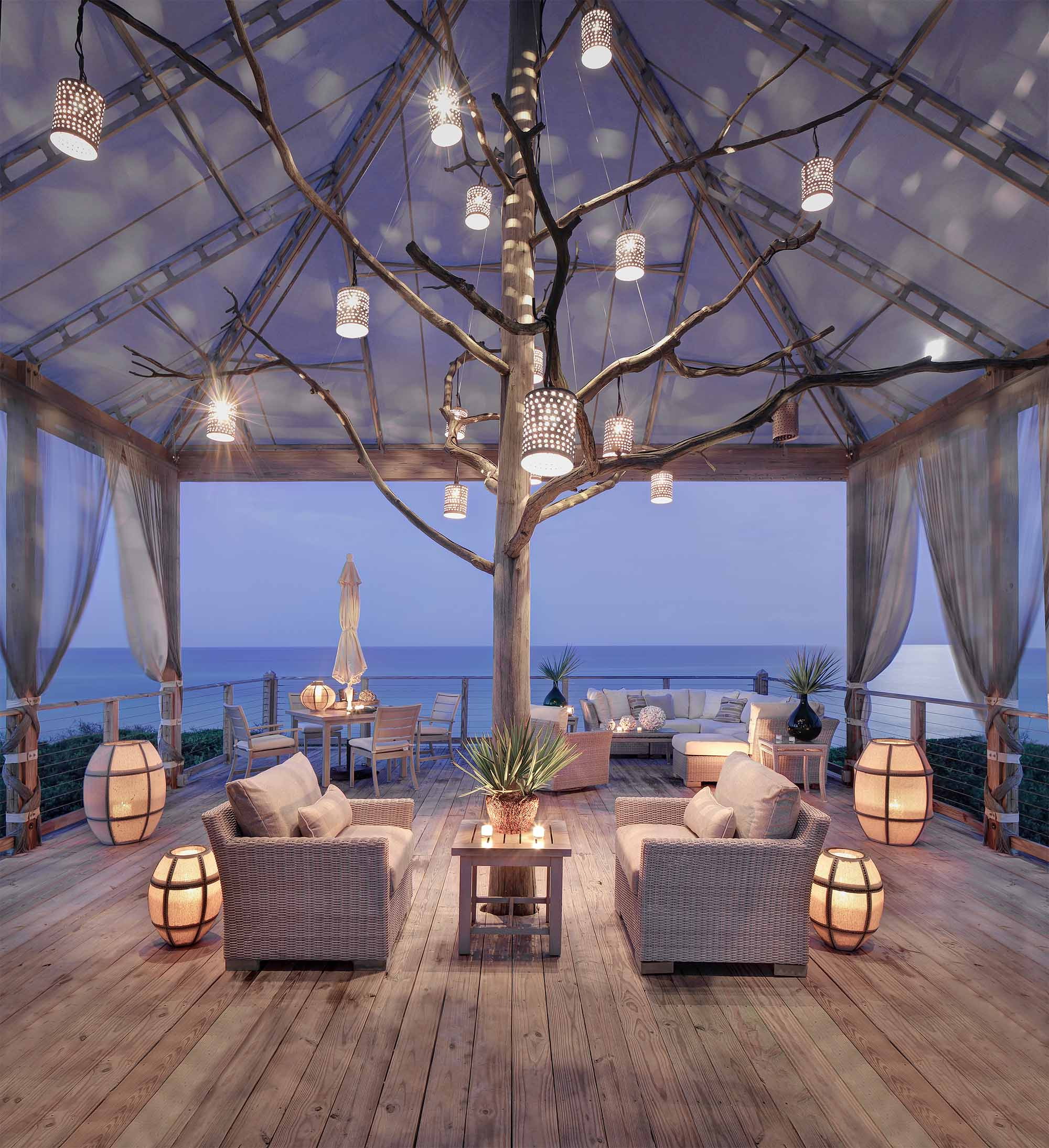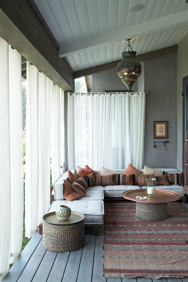 - Estilos étnicos japoneses, escandinavos, mediterrâneos ou rural da Provença e música country serão apropriados na varanda; eles ajudarão a criar uma atmosfera acolhedora e relaxante;