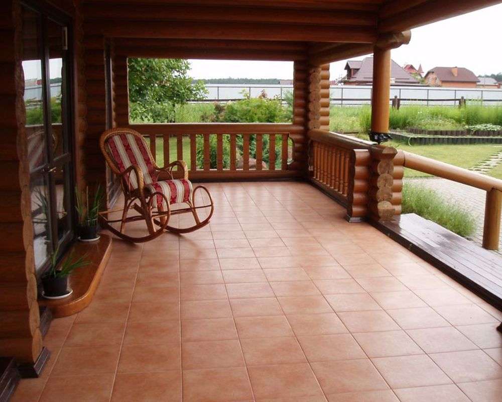 Você pode aparar o chão e as telhas quadradas, retangulares ou figuradas. Ao combinar opções de estilo, você pode criar padrões incríveis com ele. É melhor levar um azulejo para uma varanda com uma superfície áspera ou um relevo pronunciado - ao voltar da rua no inverno, a neve é frequentemente colocada em seus pés e você escorrega sobre um material muito liso.