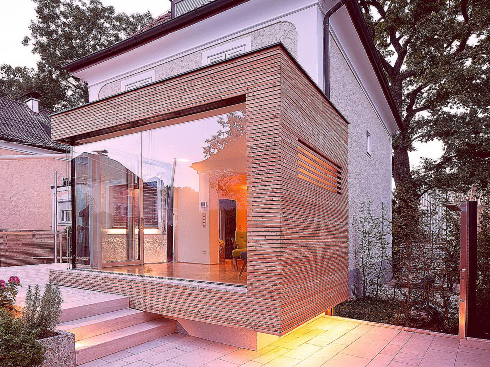 Combina perfeitamente com vidro, policarbonato, metal forjado, pedra natural ou artificial e azulejo. Muito interessante é a novidade que surgiu no mercado, chamado papel de parede de fachada - material acrílico laminado. Inicialmente, tem uma cor branca e pode ser pintada em qualquer tonalidade de cor.