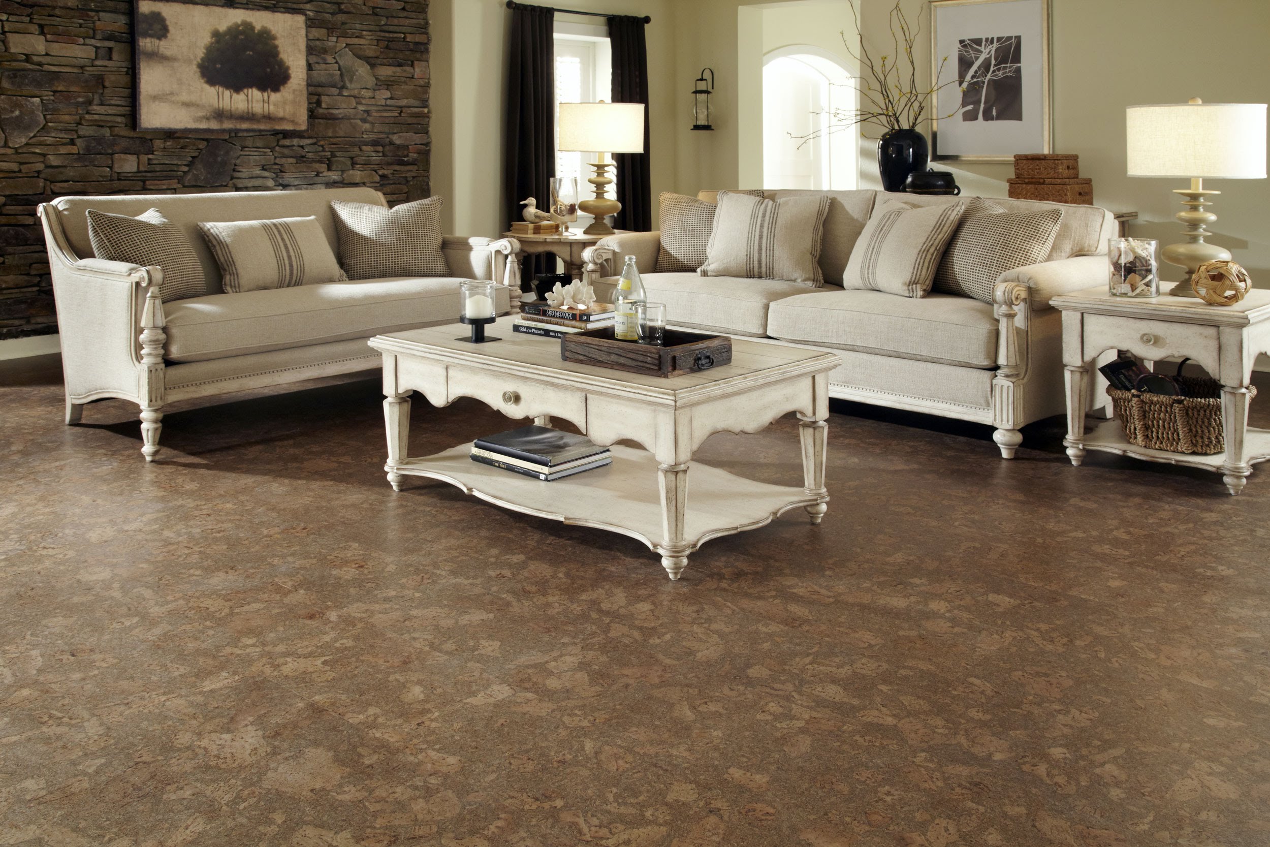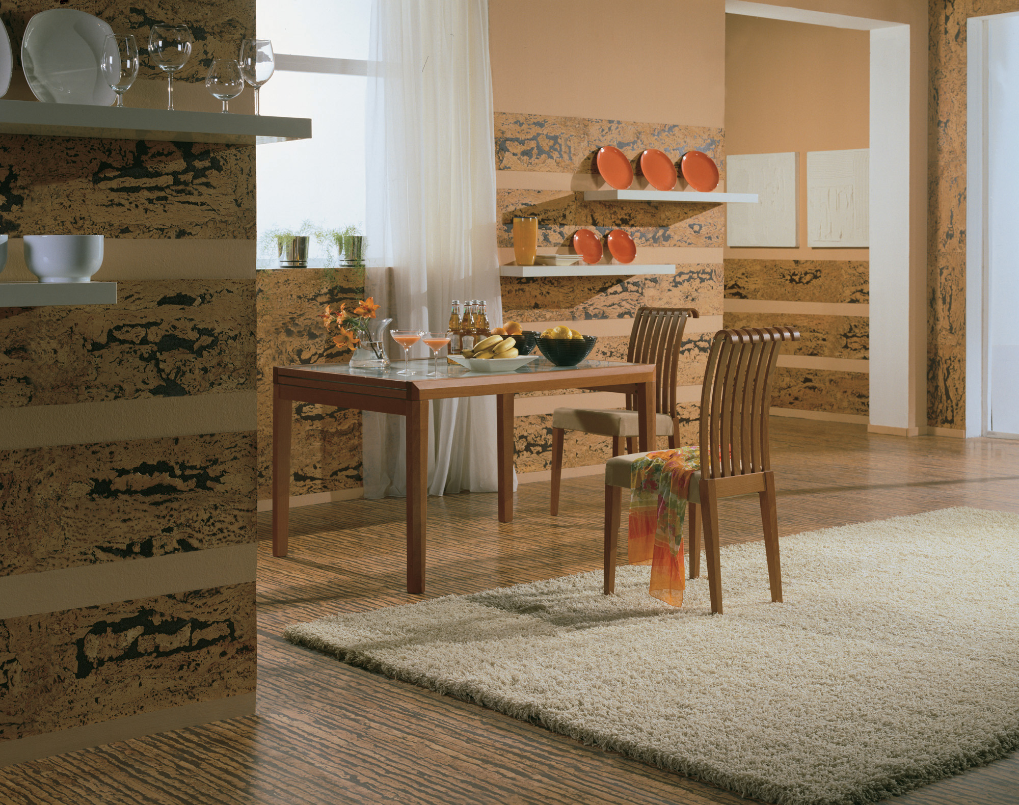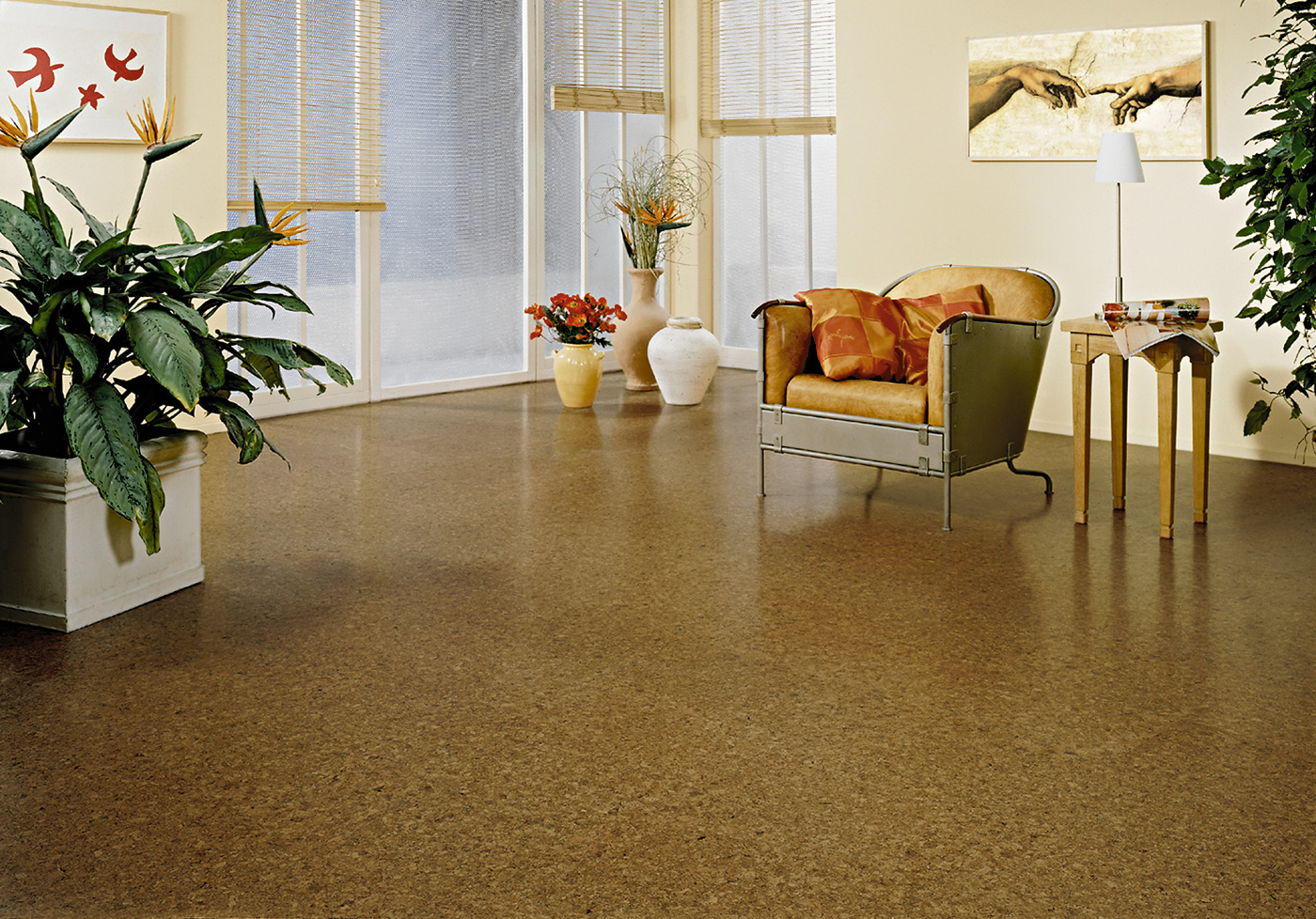 A cor primária da cortiça parece muito interessante. Essa cobertura pode ser colocada em qualquer parte da casa, mesmo casa de banho. É macio e acolhedor, ótimo para qualquer sala e seria apropriado em um interior clássico e em estilos como moderno, alta tecnologiavanguarda minimalismo.