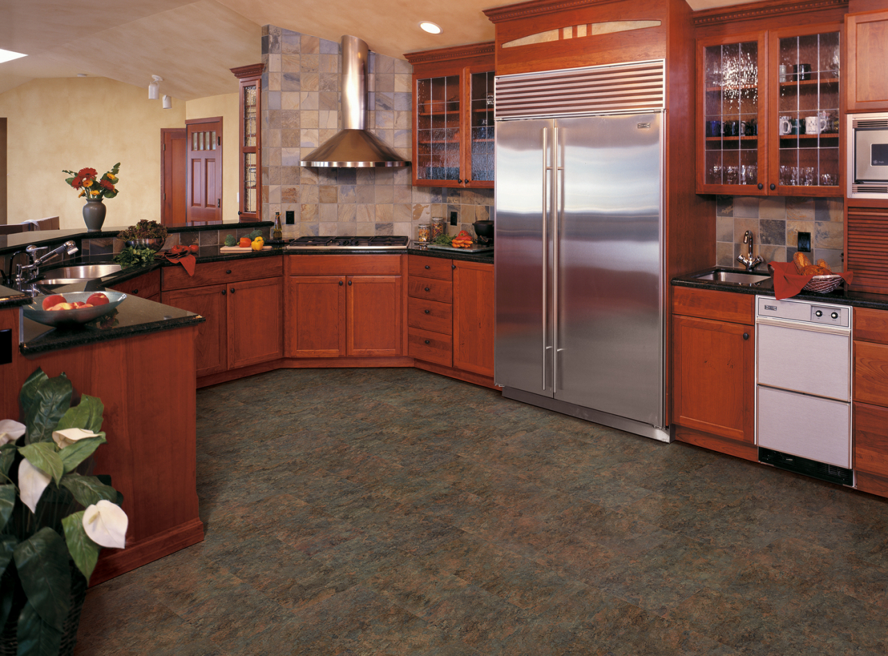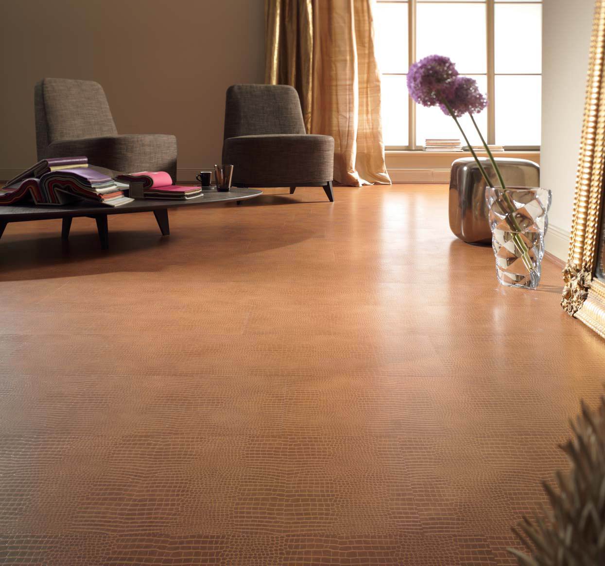 A aplicação decorativa de tal revestimento é bastante diversificada, devido à grande variedade de cores. O piso de tons naturais quentes parecerá original. Estes incluem castanho cor amareloocre A sombra é selecionada levando em conta de móveisno quarto a cozinha, sala de estar o resto do design da sala. A sombra é selecionada do mais escuro ao mais claro.