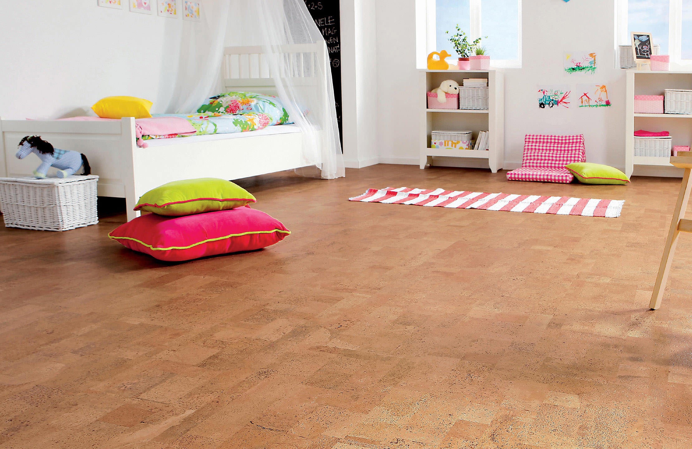 Piso laminado dá frio. A cortiça, ao contrário, libera calor, será confortável caminhar sobre ela com os pés descalços.