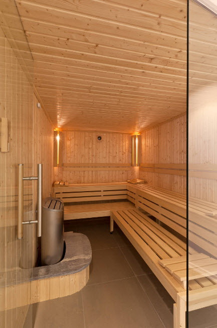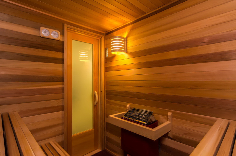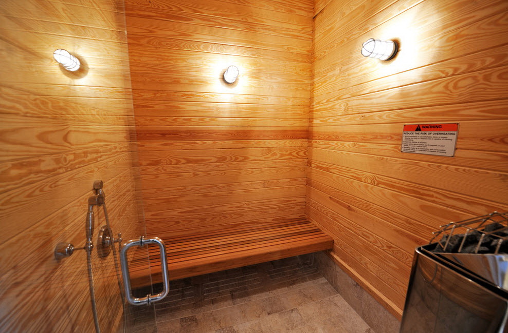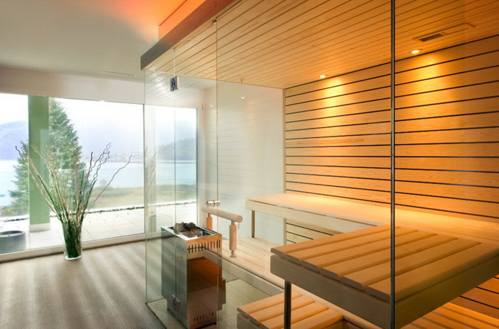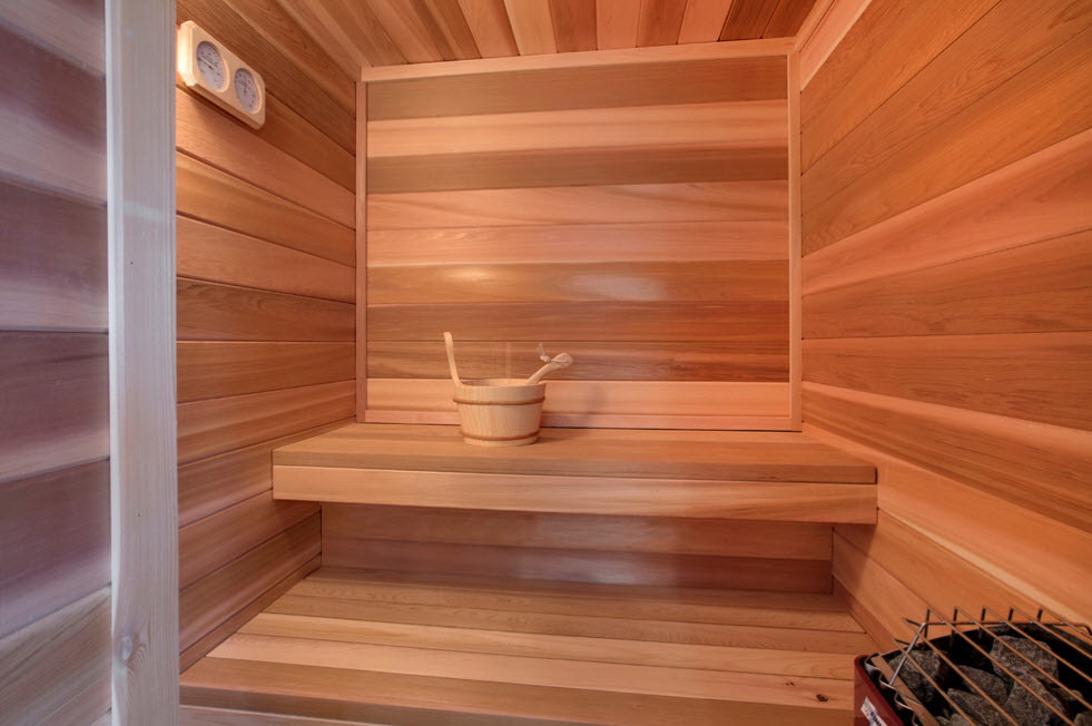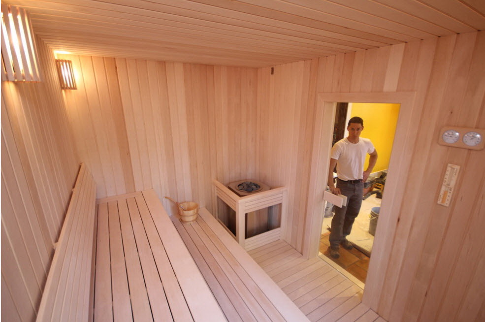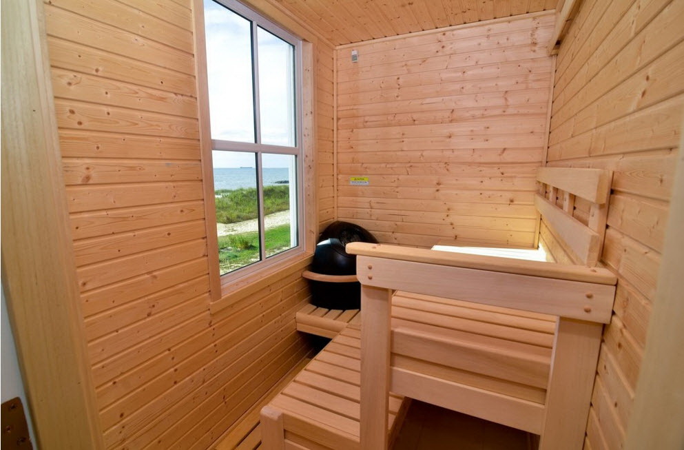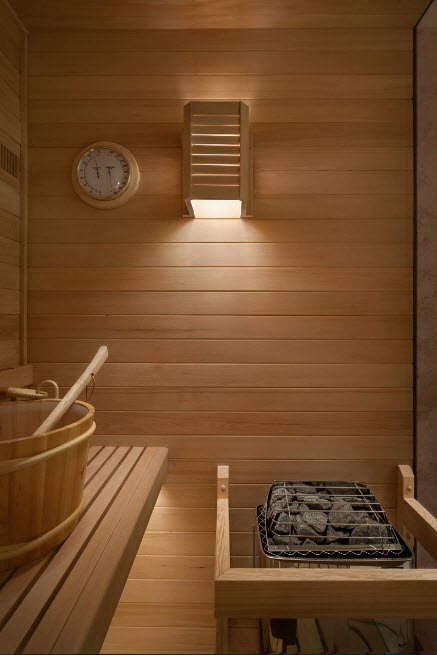 Na sala de vapor é colocado o forno e prateleiras. Certifique-se de instalar telas para proteção contra incêndio, e as pessoas precisam ser protegidas contra queimaduras.