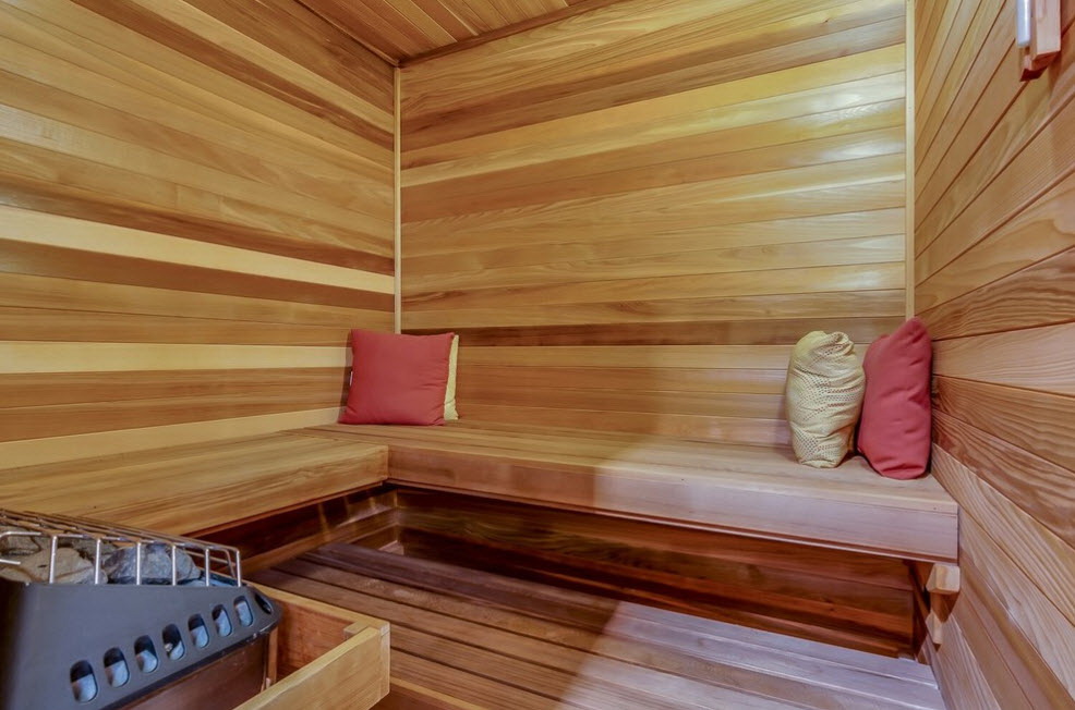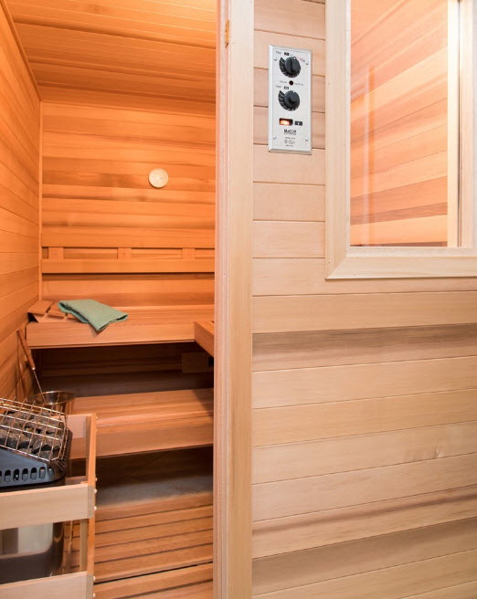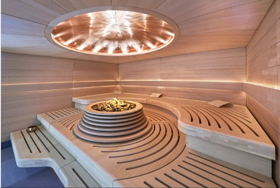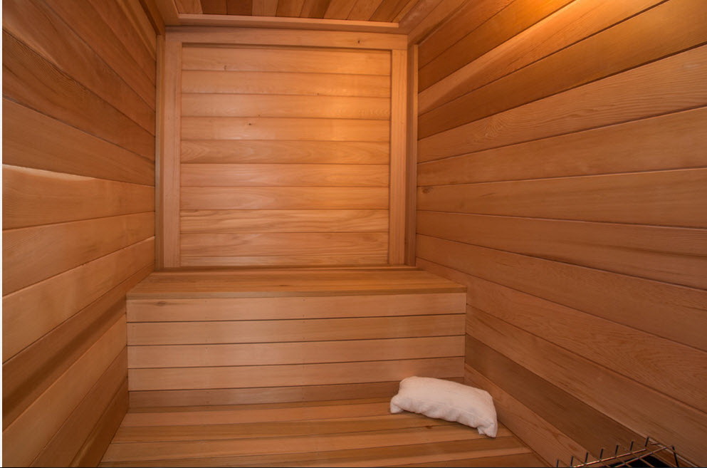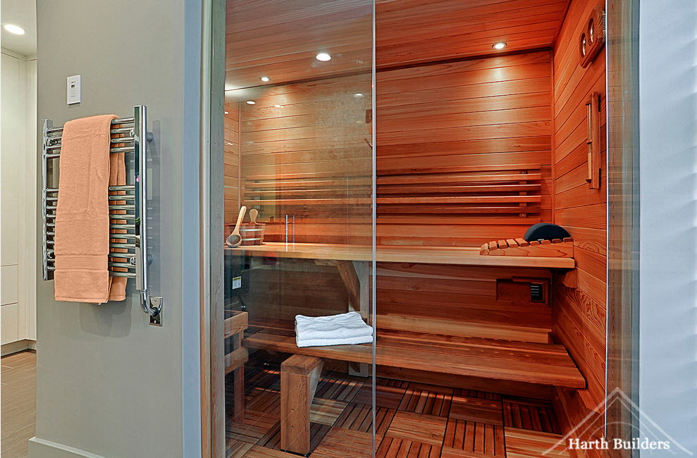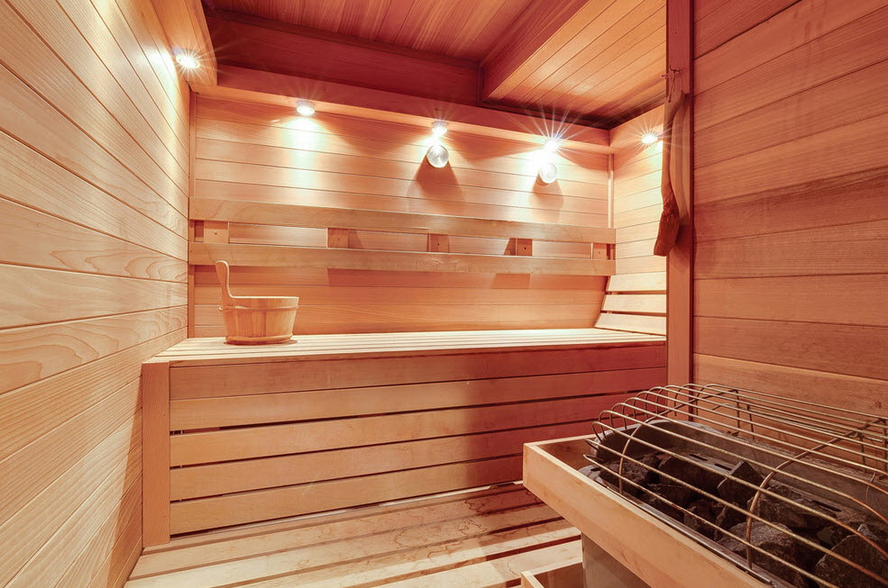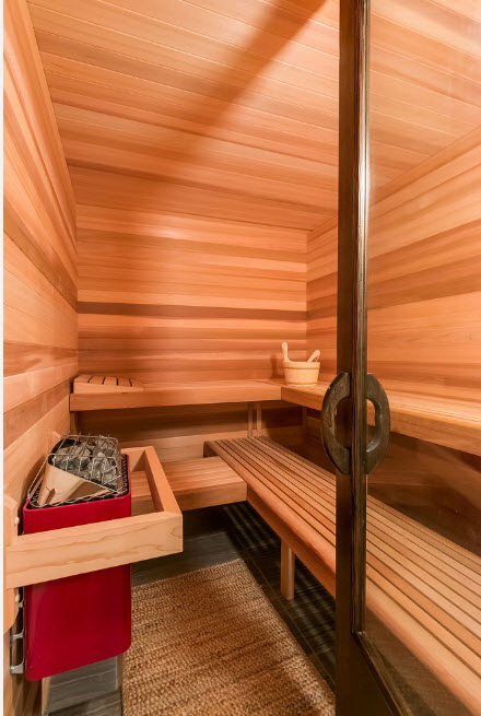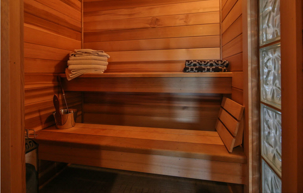 Na sala de vapor é colocado o forno e prateleiras. Certifique-se de instalar telas para proteção contra incêndio, e as pessoas precisam ser protegidas contra queimaduras.