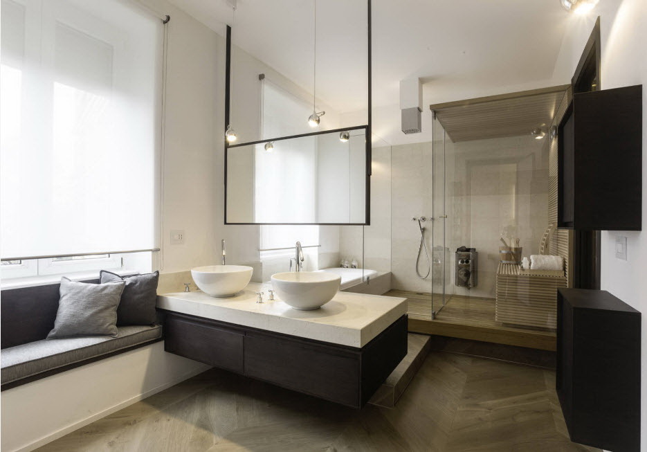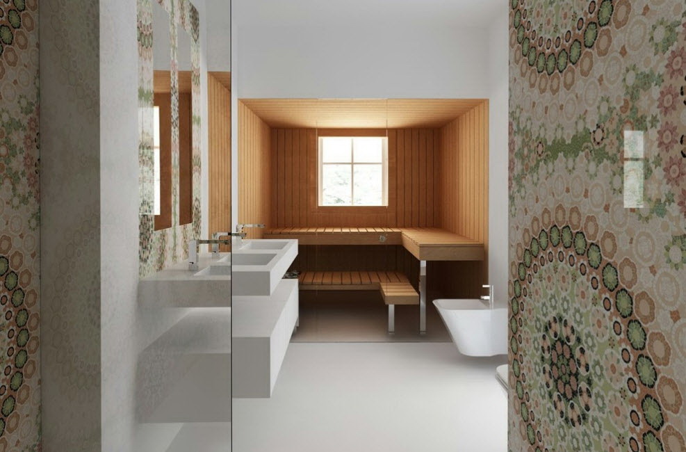 Para obter o verdadeiro prazer de procedimentos de banho, o espaço circundante deve ser devidamente organizado, ea decoração é feita com alta qualidade e bonita.