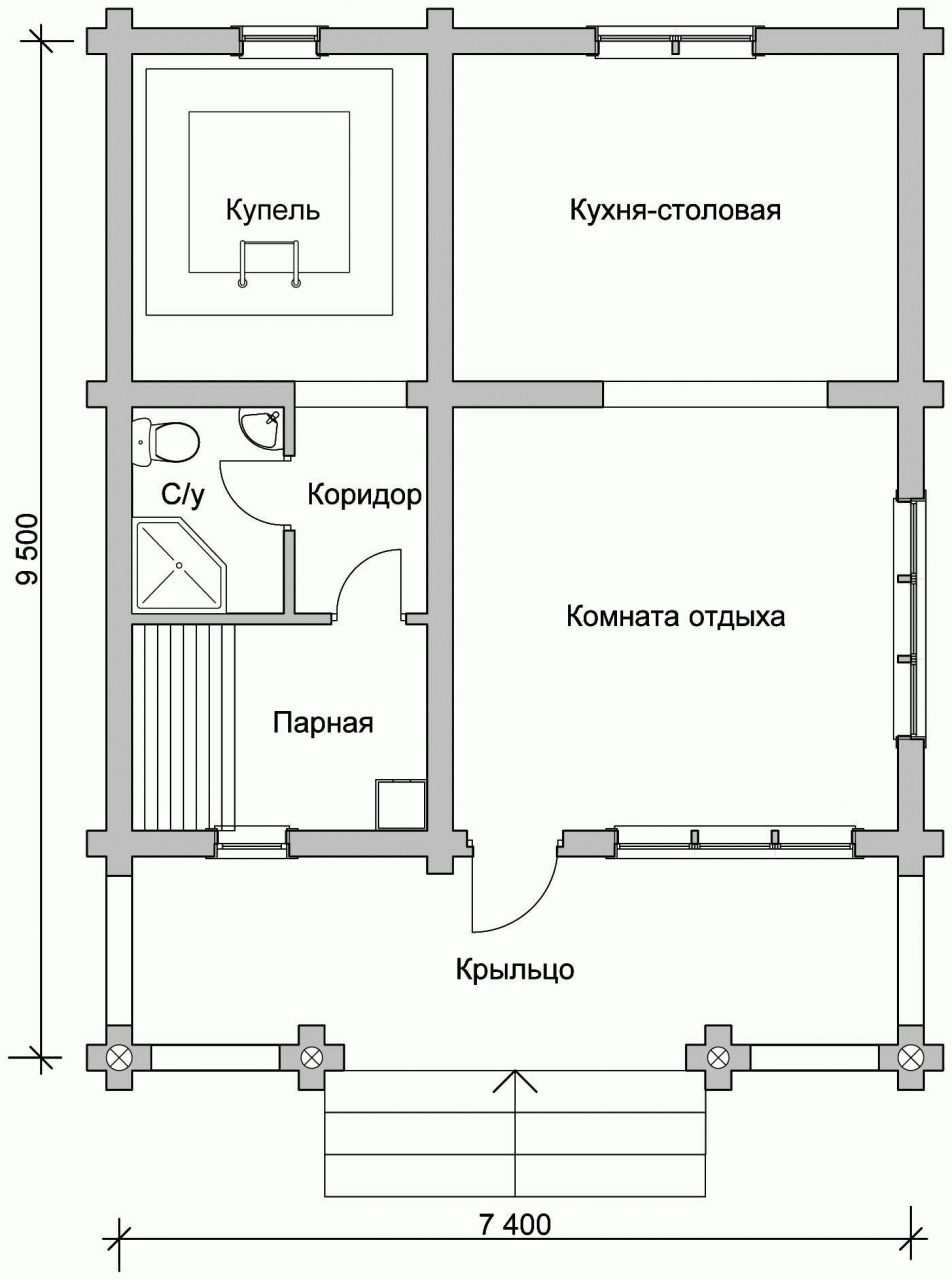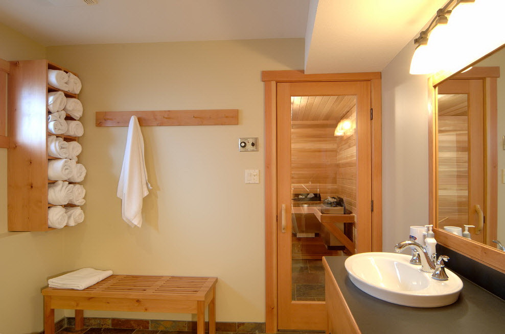 As instalações devem estar convenientemente localizadas e adequadamente comunicadas entre si. A sala de lavagem é precedida por um quarto de vestir e vestiário, a partir do qual você pode ir para a sala de vapor ou piscina. Para uso no inverno no banho adicionalmente adequar a plataforma, o que impede a penetração de ar frio e a aparência de correntes de ar.